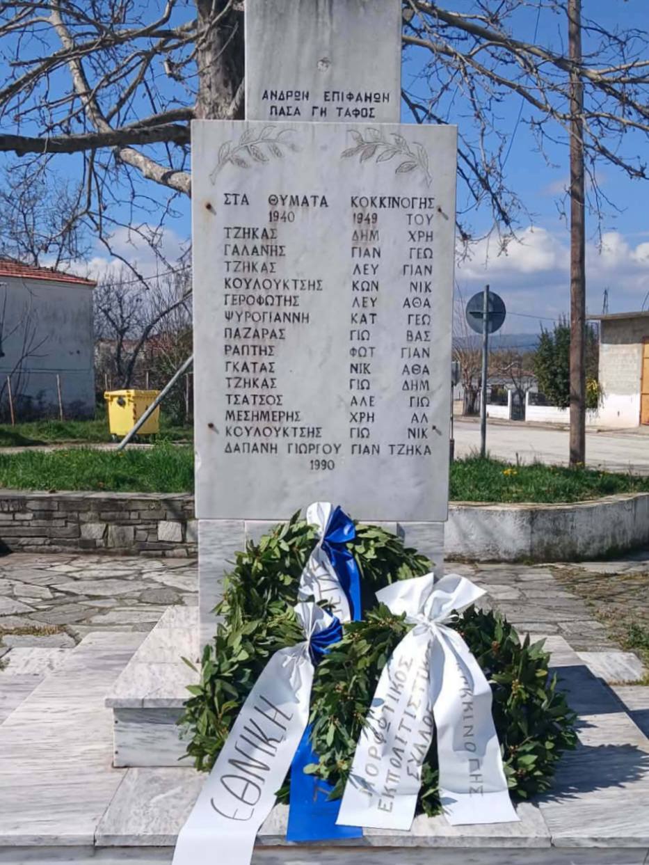 Η τελετή συνεχίστηκε με κατάθεση στεφάνων από τον Πρόεδρο της Κοινότητας Κοκκινόγης Ιωάννη Μπατζογιάννη, το μέλος του Δ.Σ. του Μ.Ε.Σ. Νίκο Γκρούμτσια και τον εκπρόσωπο της Εθνικής Αντίστασης Γρηγόρη Σπανούλη.
