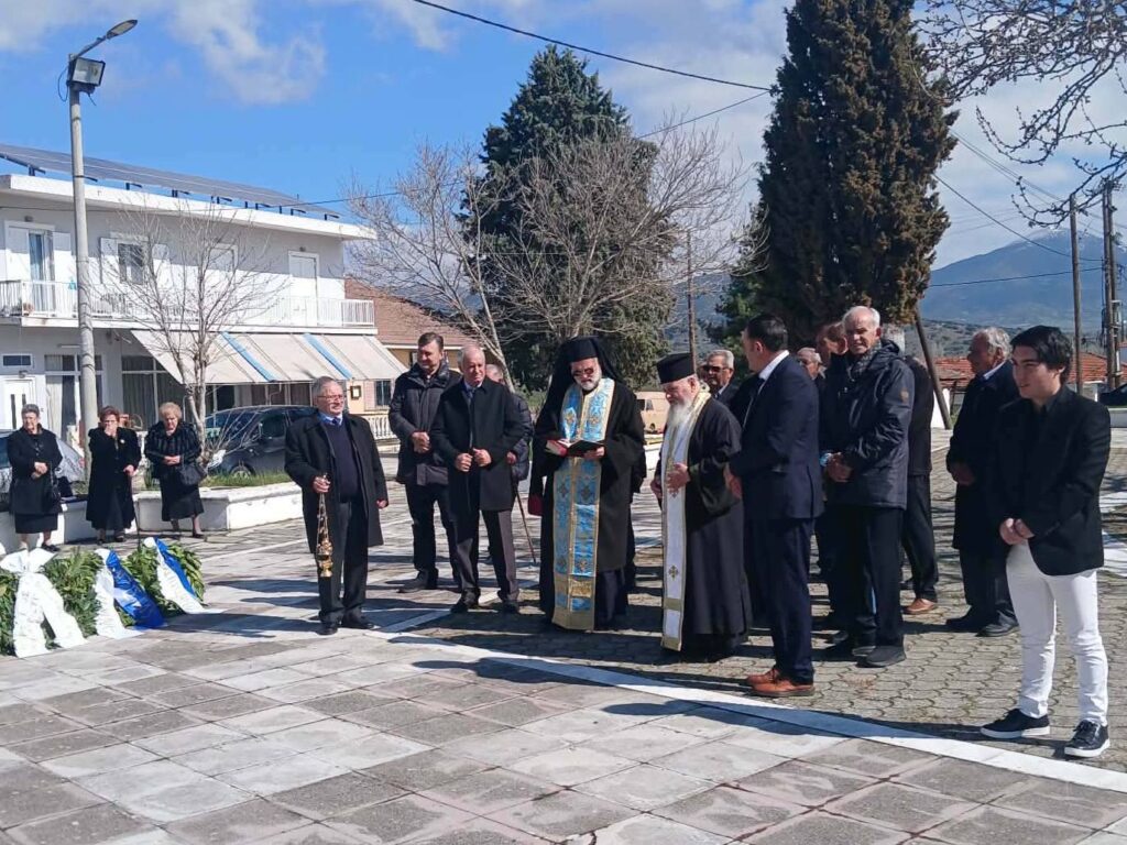 Μετά το πέρας της δοξολογίας, οι κάτοικοι του χωριού μετέβησαν στο Μνημείο Πεσόντων στην πλατεία, όπου τελέστηκε η επιμνημόσυνη δέηση προς τιμήν των ηρώων.