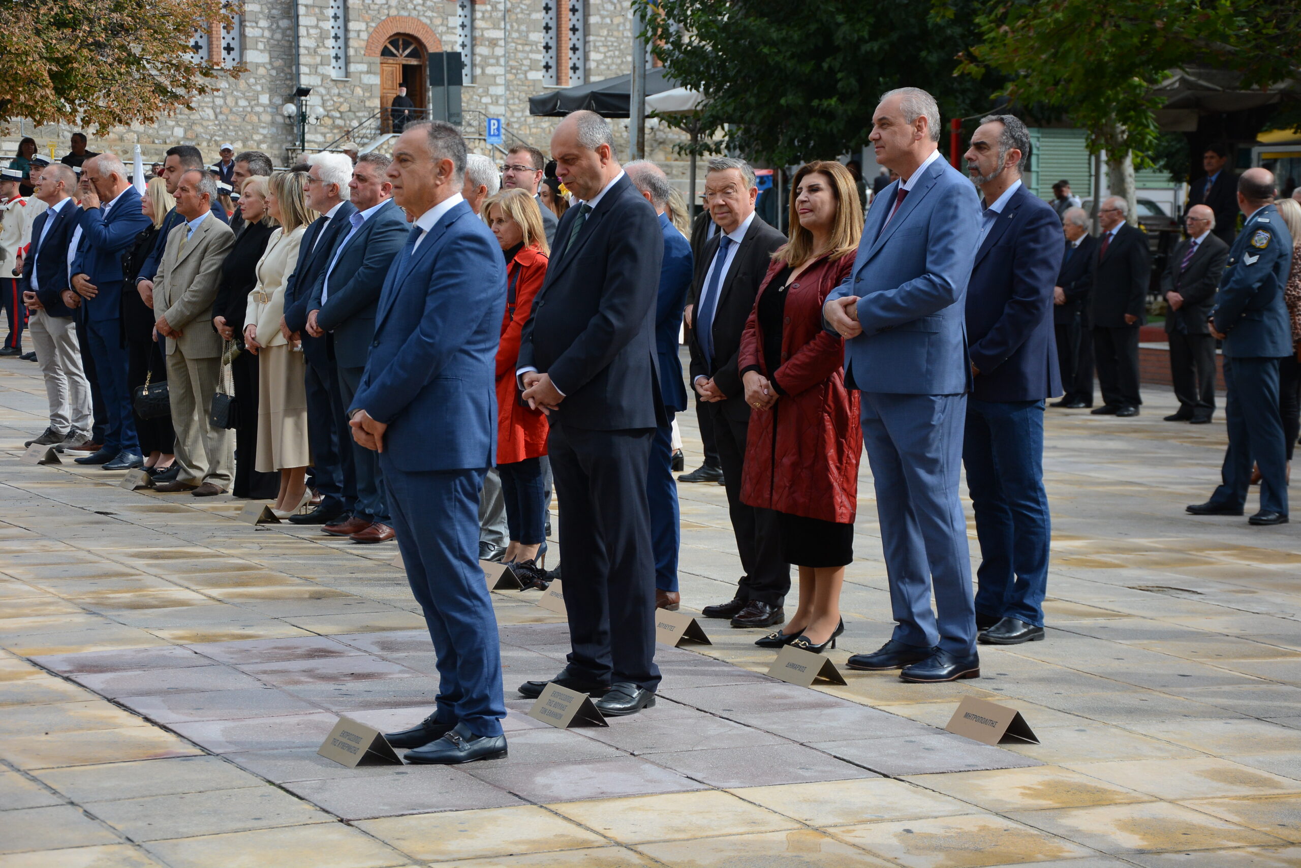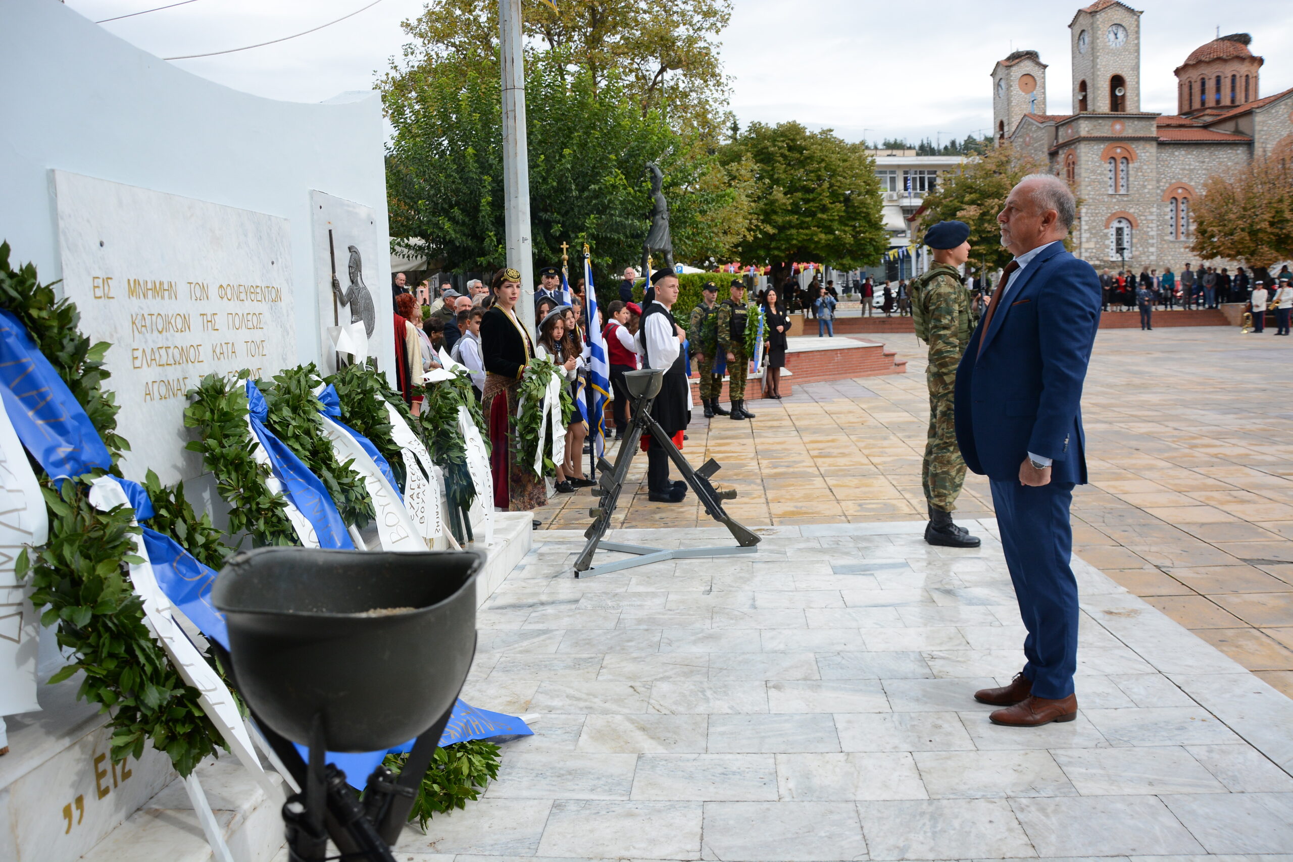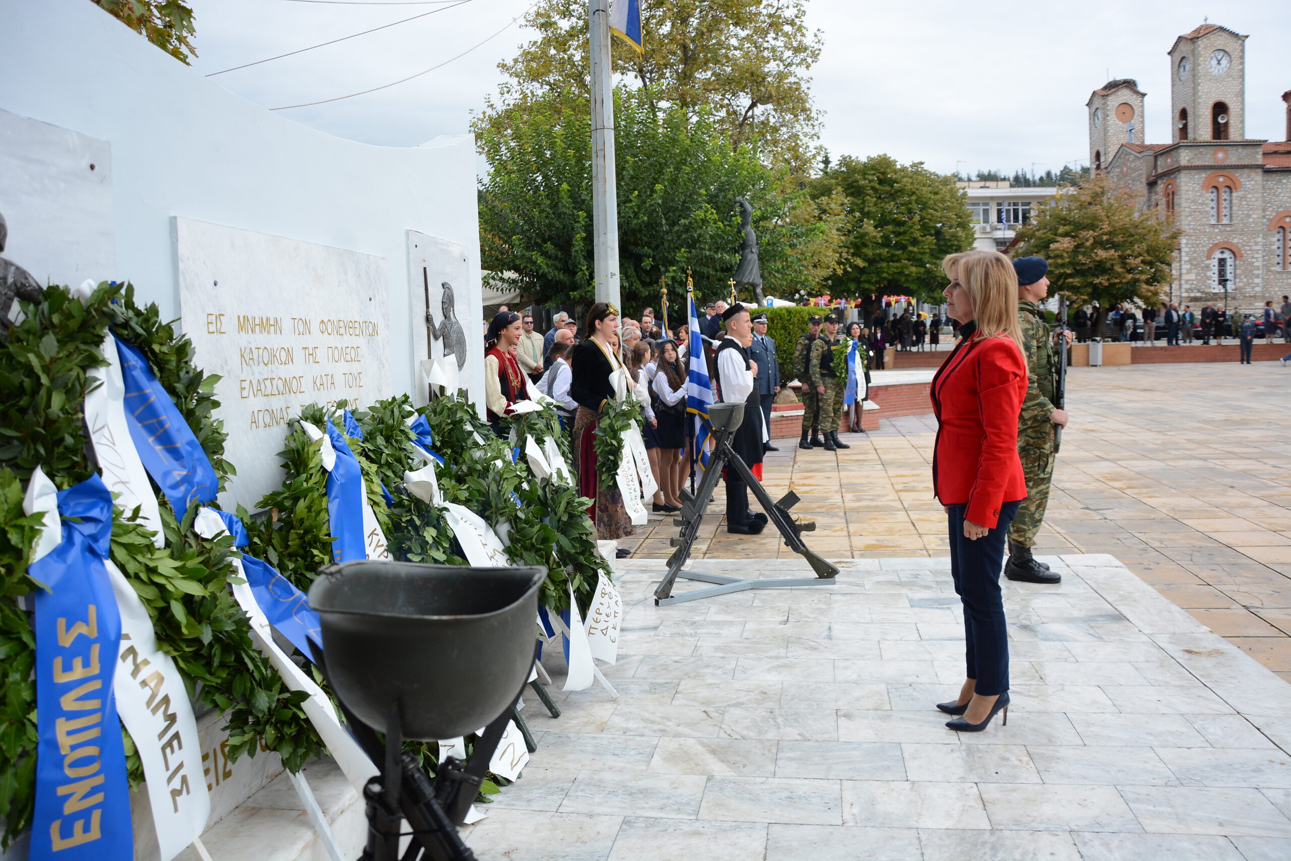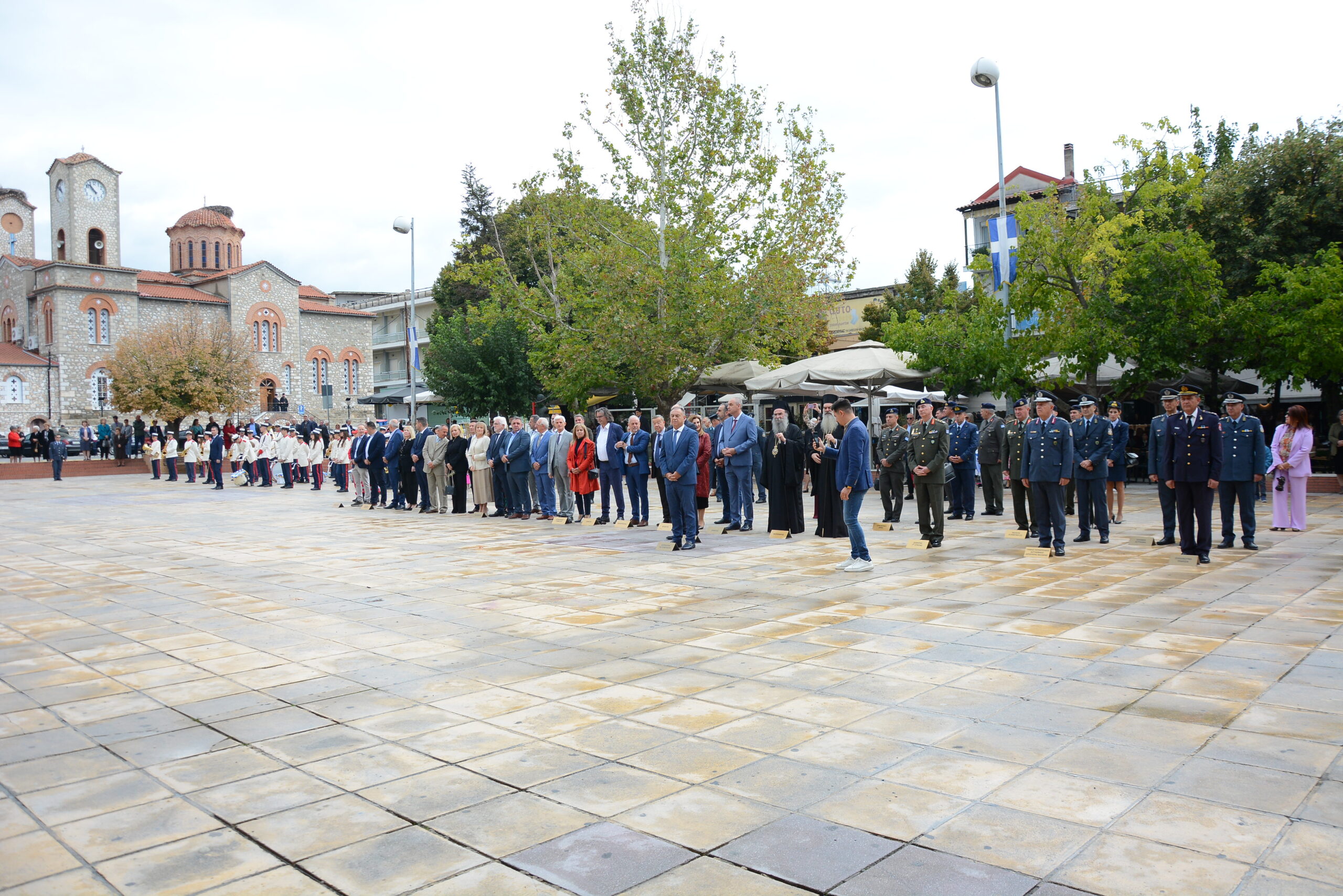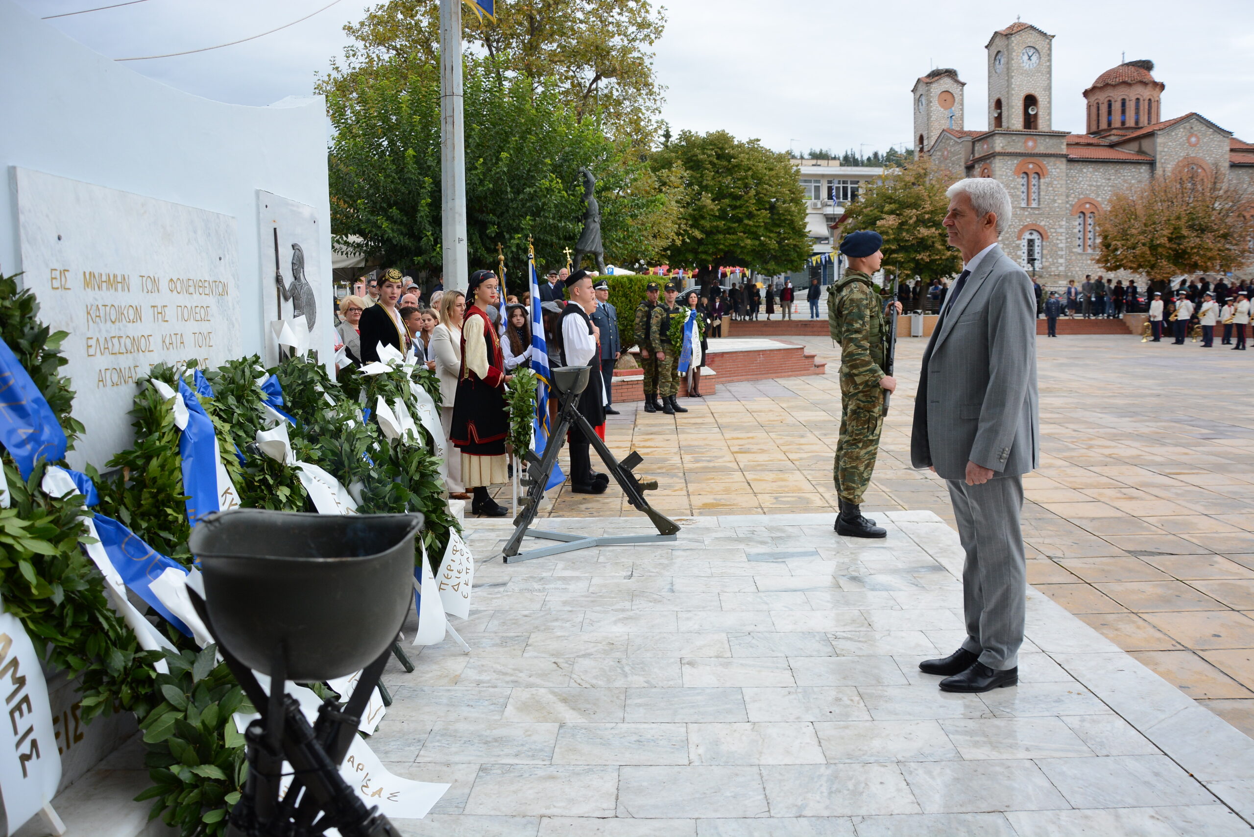 Στον Ιερό Μητροπολιτικό Ναό του Αγίου Δημητρίου εψάλη επίσημη δοξολογία προεξάχοντος του Επισκόπου Αμφιπόλεως κ. Χριστοφόρου, συγχοροστατούντος του Σεβασμιωτάτου Μητροπολίτου Ελασσόνας κ. Χαρίτωνα, ενώ στη συνέχεια έγινε επιμνημόσυνη δέηση για τους πεσόντες, εκφώνηση του πανηγυρικού της ημέρας από την κα Ελένη Μπλιούμη Διευθύντρια Δημοτικού Σχολείου Καλλιθέας, κατάθεση στεφάνων και τέλος τηρήθηκε ενός λεπτού σιγή στη μνήμη των πεσόντων νεκρών και ανακρούστηκε ο Εθνικός Ύμνος.
