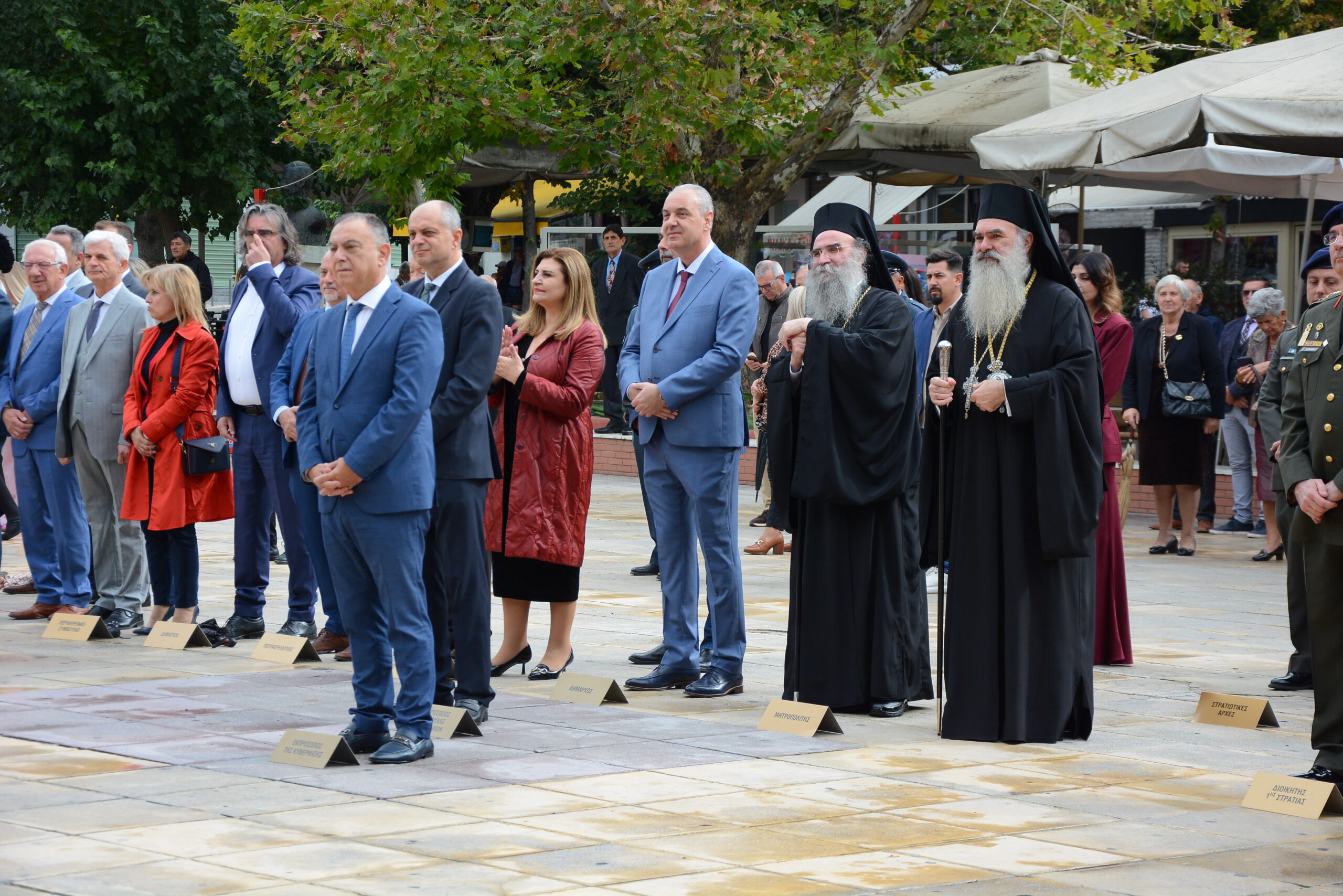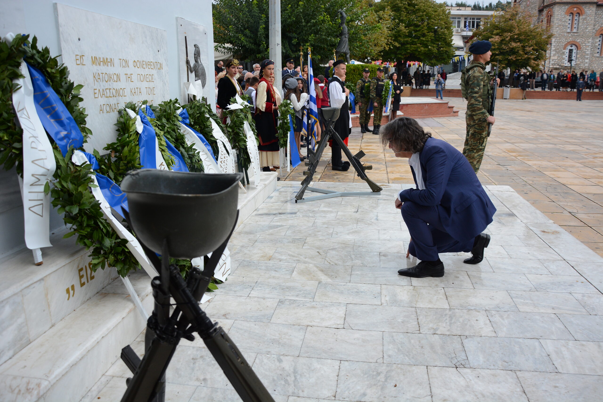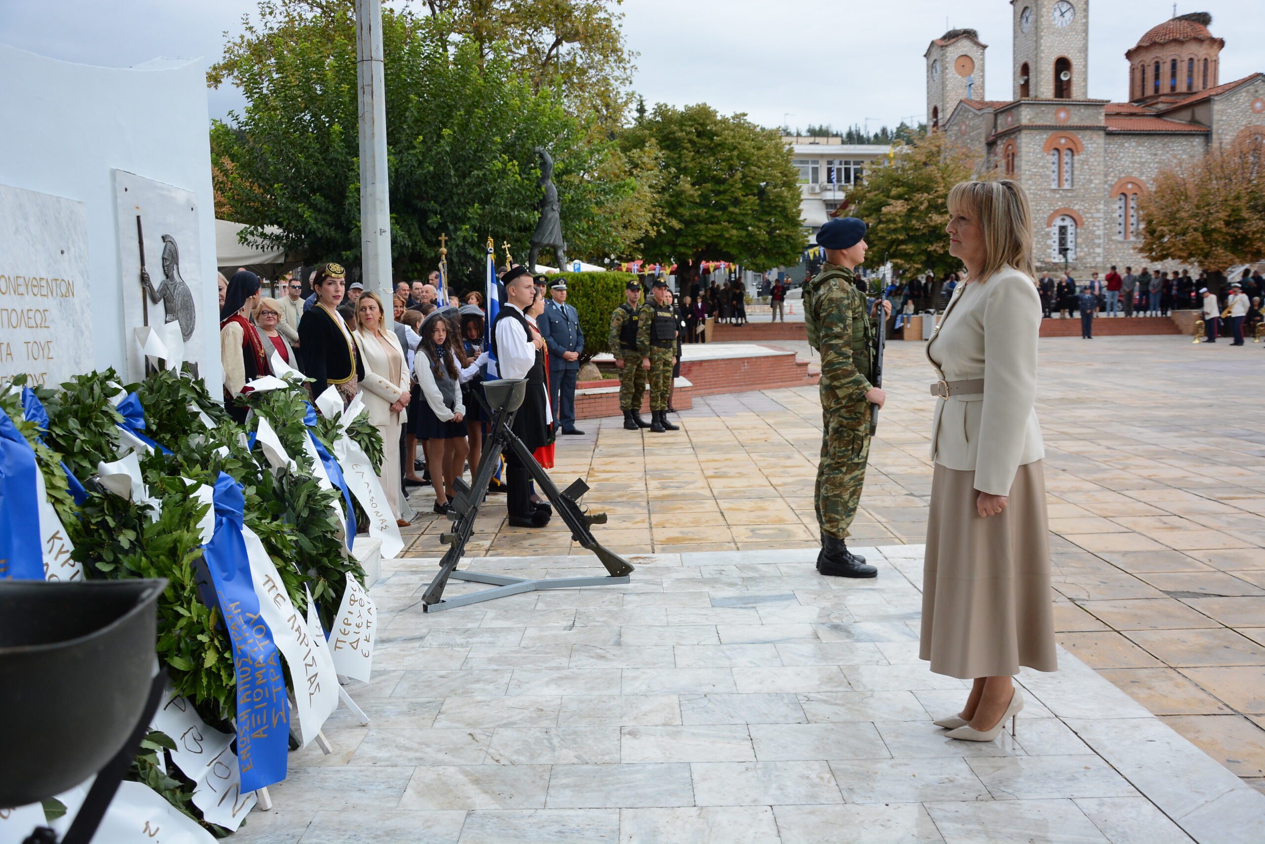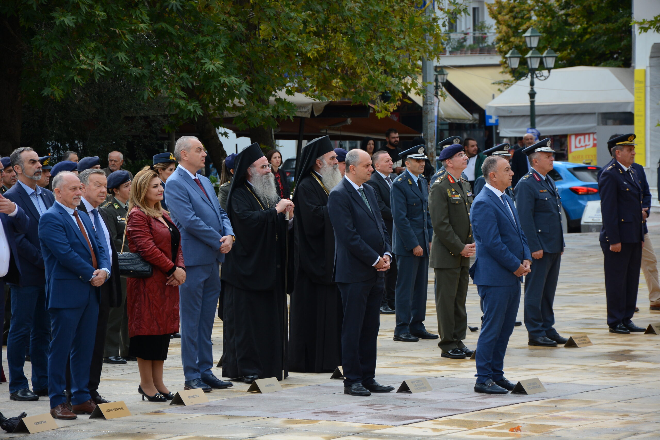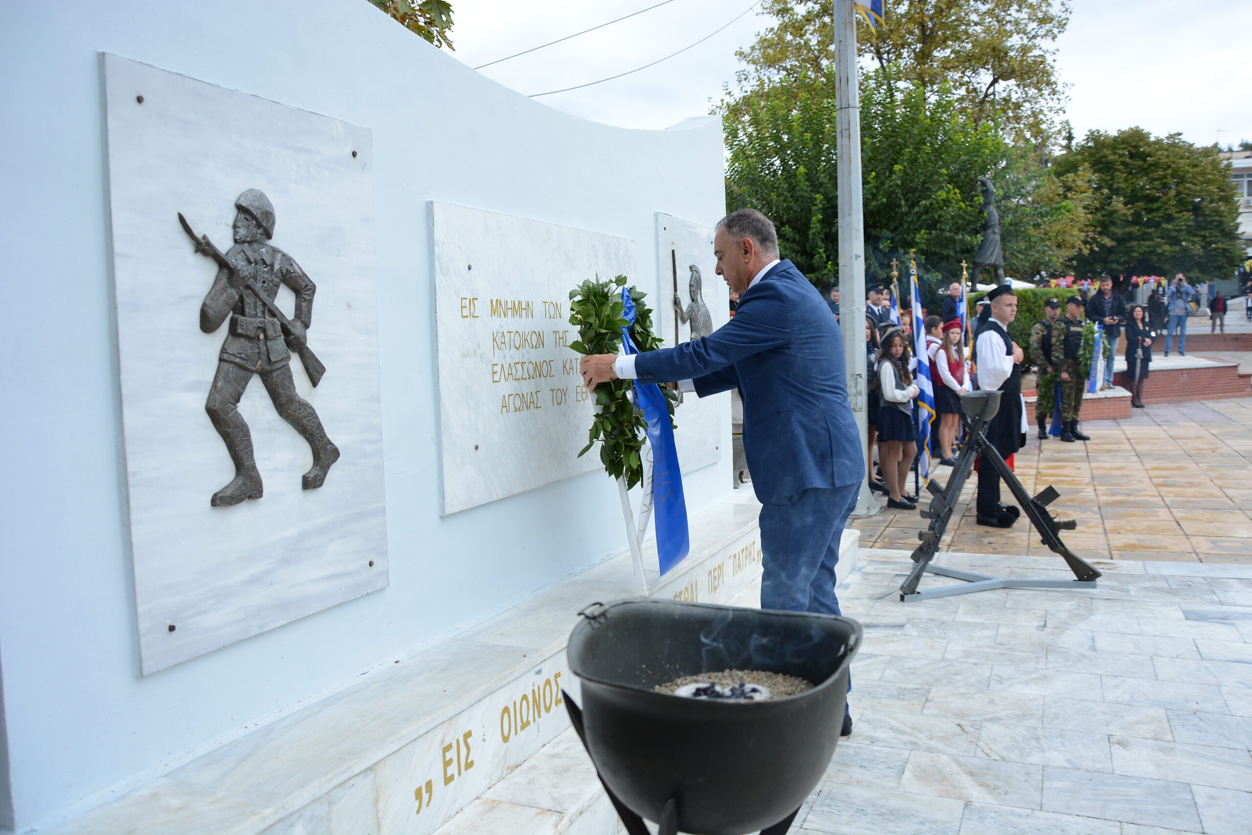 Στον Ιερό Μητροπολιτικό Ναό του Αγίου Δημητρίου εψάλη επίσημη δοξολογία προεξάχοντος του Επισκόπου Αμφιπόλεως κ. Χριστοφόρου, συγχοροστατούντος του Σεβασμιωτάτου Μητροπολίτου Ελασσόνας κ. Χαρίτωνα, ενώ στη συνέχεια έγινε επιμνημόσυνη δέηση για τους πεσόντες, εκφώνηση του πανηγυρικού της ημέρας από την κα Ελένη Μπλιούμη Διευθύντρια Δημοτικού Σχολείου Καλλιθέας, κατάθεση στεφάνων και τέλος τηρήθηκε ενός λεπτού σιγή στη μνήμη των πεσόντων νεκρών και ανακρούστηκε ο Εθνικός Ύμνος.