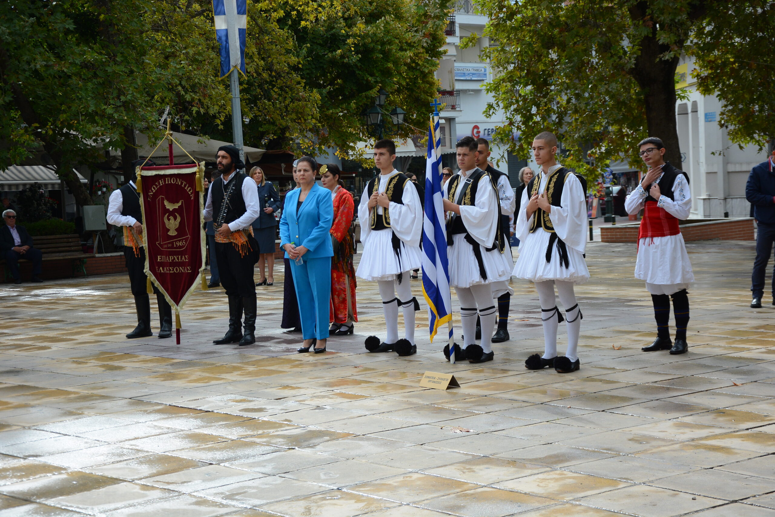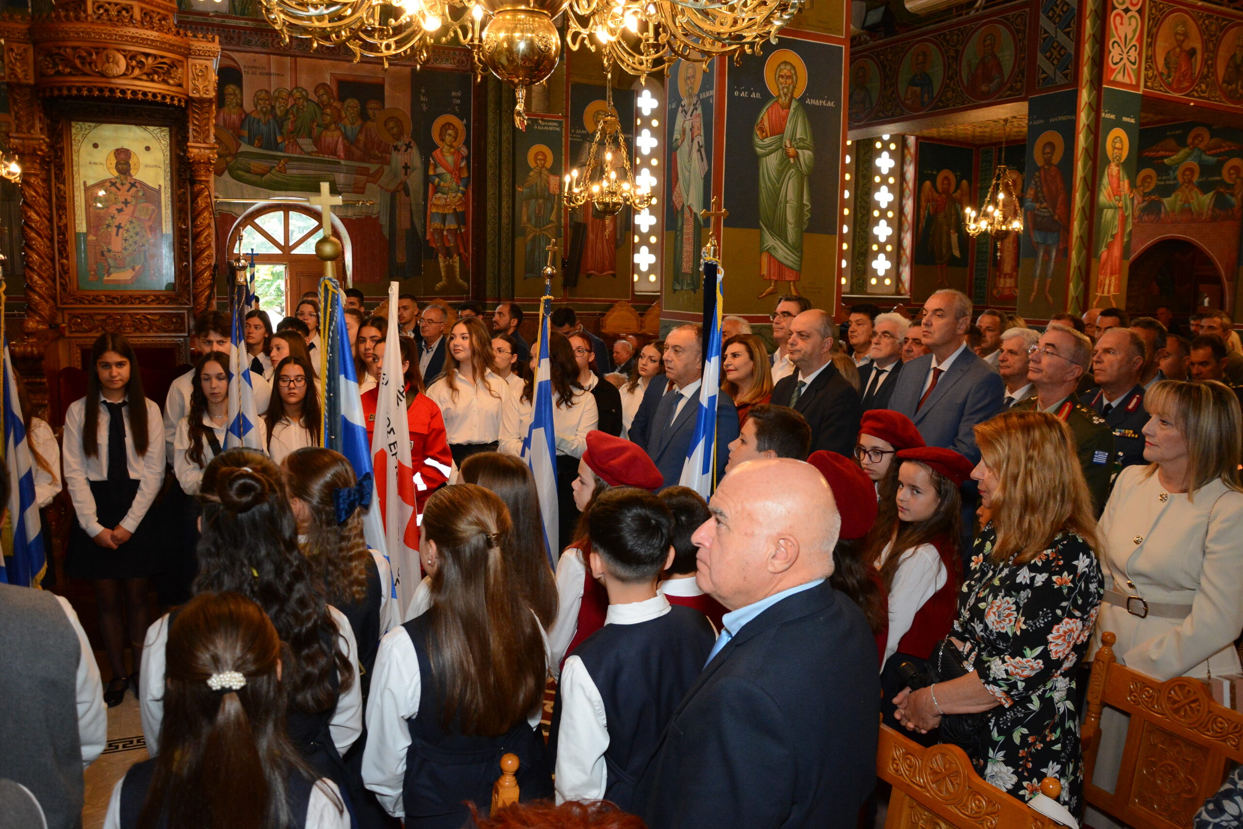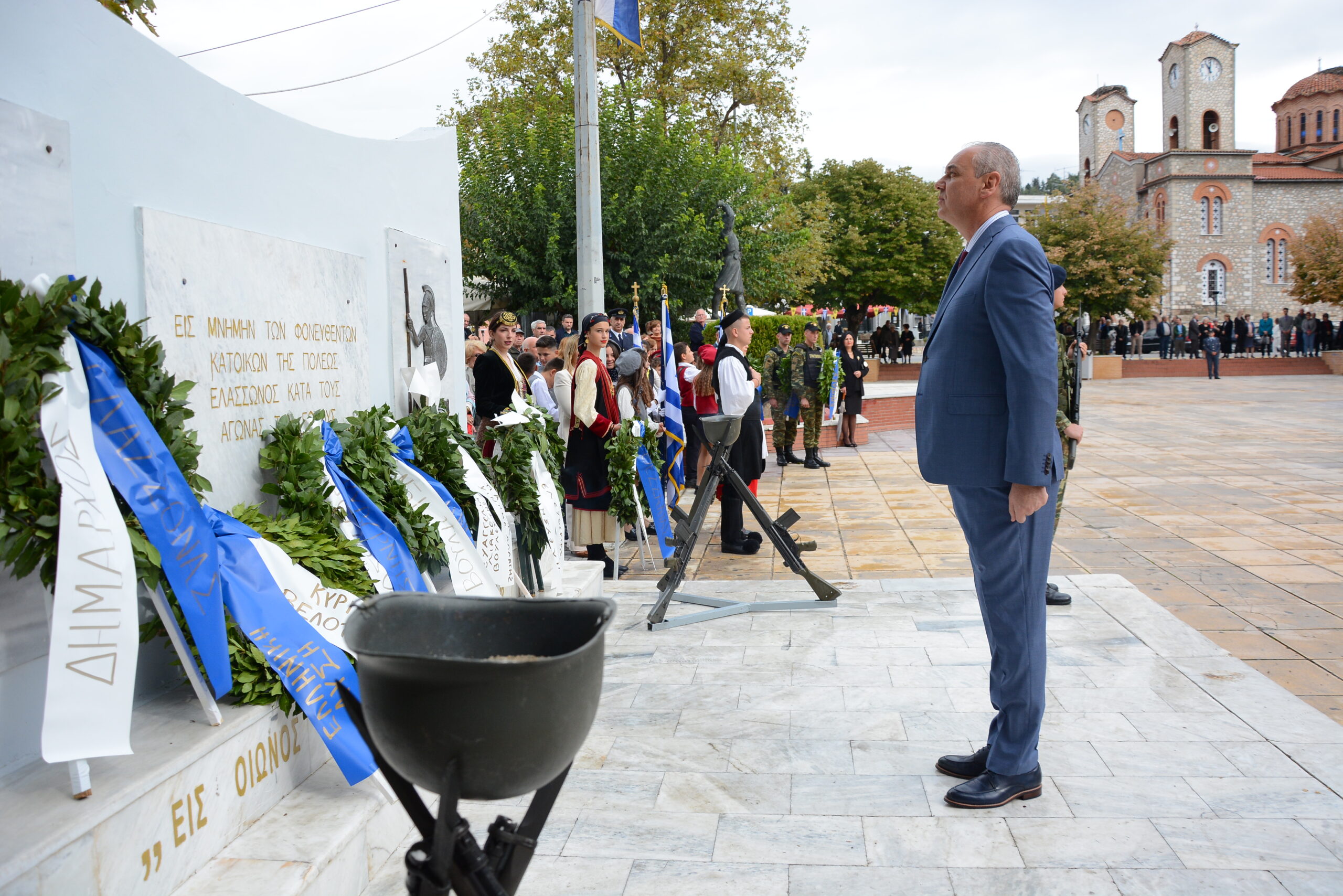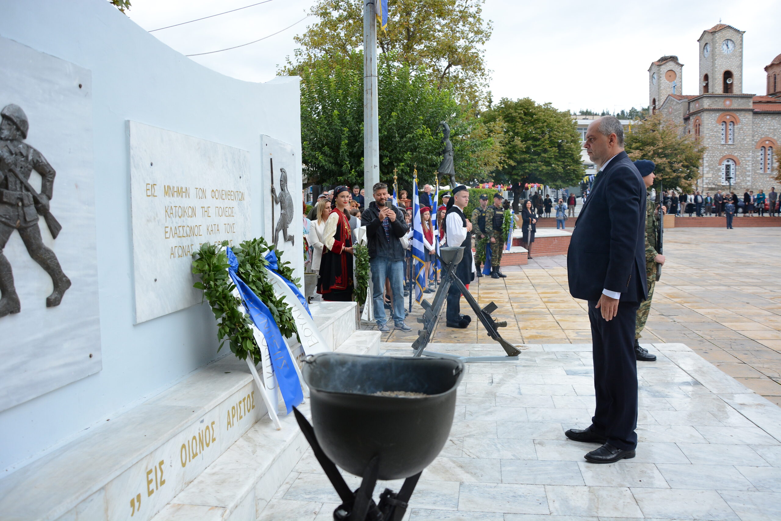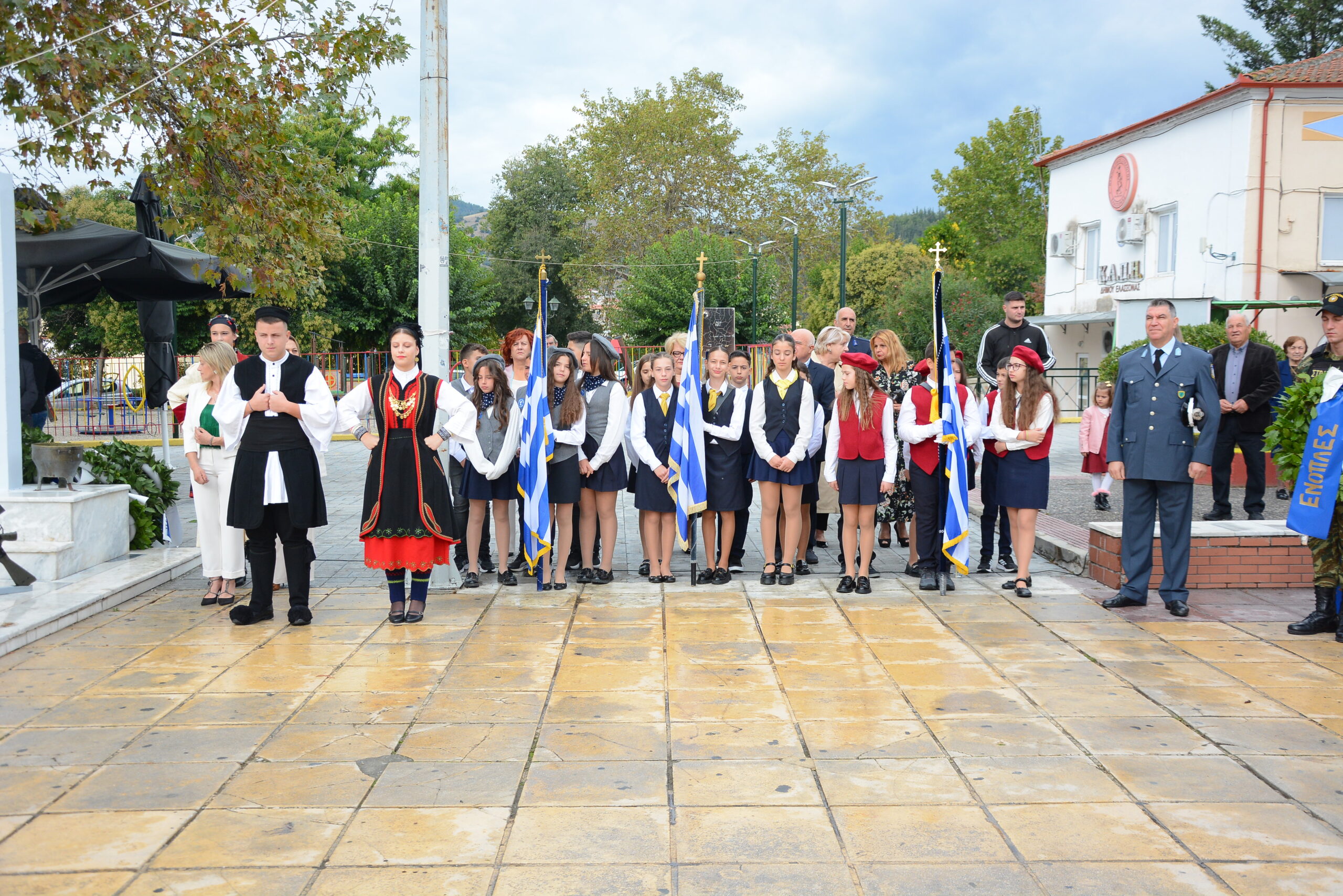 Στον Ιερό Μητροπολιτικό Ναό του Αγίου Δημητρίου εψάλη επίσημη δοξολογία προεξάχοντος του Επισκόπου Αμφιπόλεως κ. Χριστοφόρου, συγχοροστατούντος του Σεβασμιωτάτου Μητροπολίτου Ελασσόνας κ. Χαρίτωνα, ενώ στη συνέχεια έγινε επιμνημόσυνη δέηση για τους πεσόντες, εκφώνηση του πανηγυρικού της ημέρας από την κα Ελένη Μπλιούμη Διευθύντρια Δημοτικού Σχολείου Καλλιθέας, κατάθεση στεφάνων και τέλος τηρήθηκε ενός λεπτού σιγή στη μνήμη των πεσόντων νεκρών και ανακρούστηκε ο Εθνικός Ύμνος.