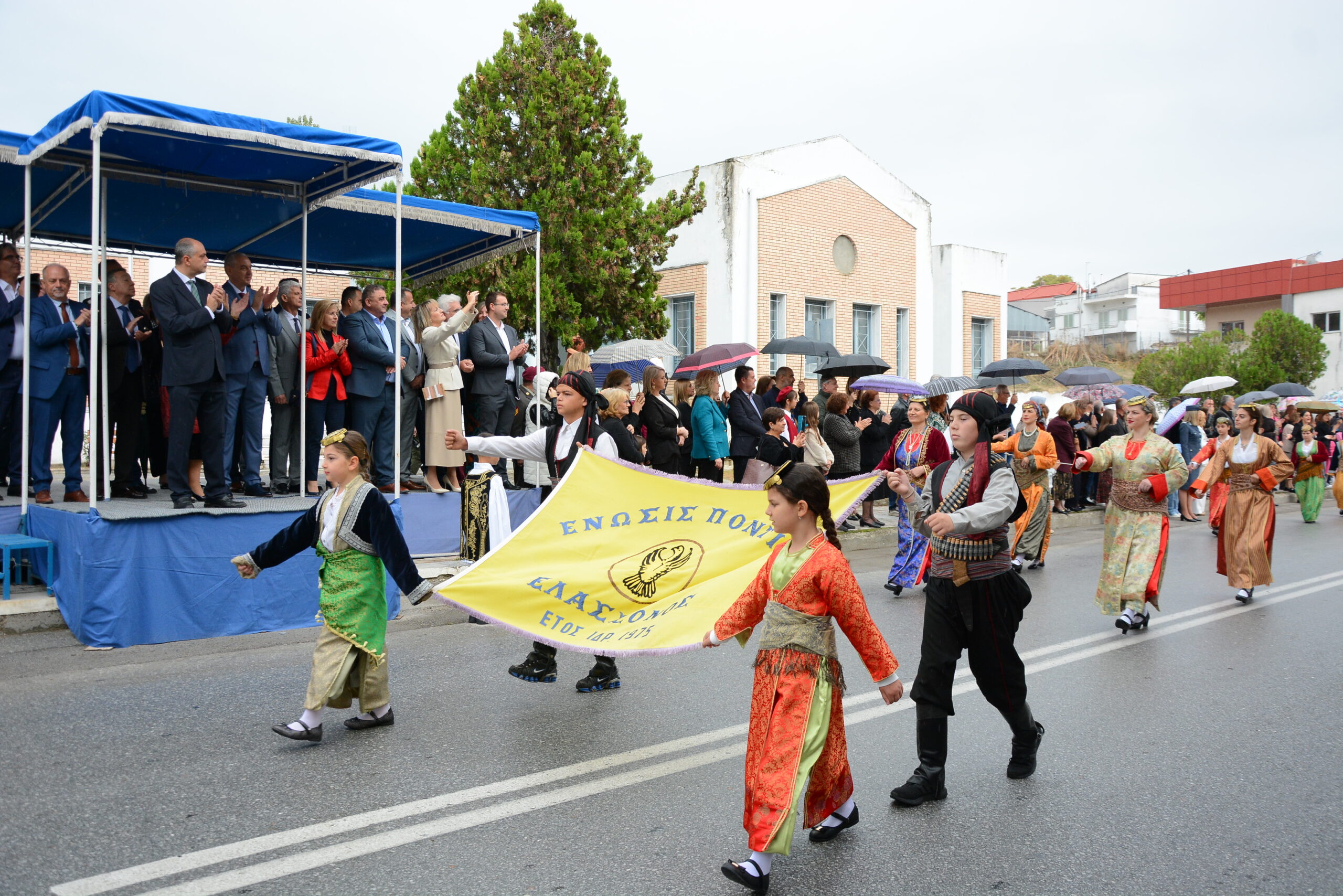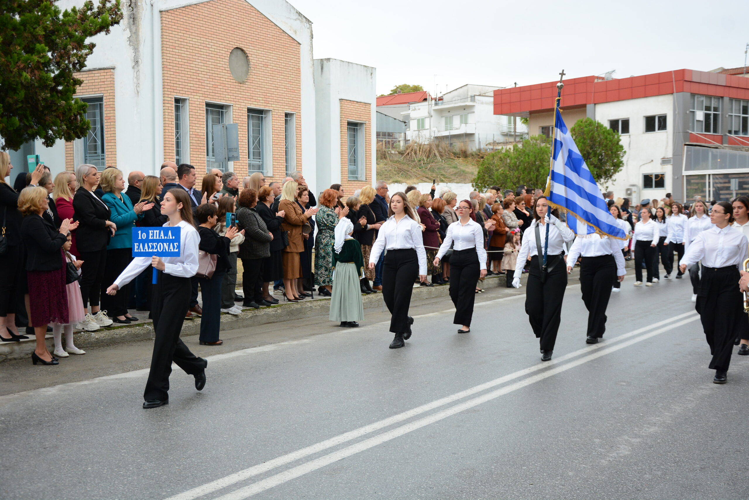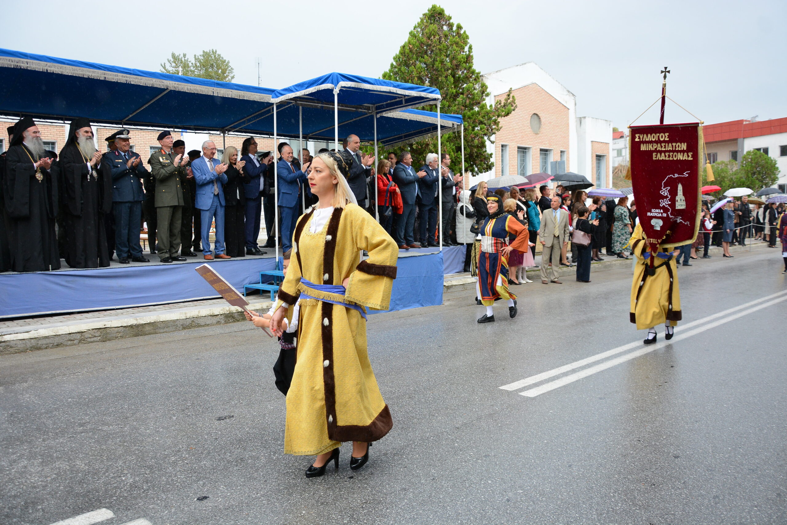 Αμέσως μετά ακολούθησε παρέλαση στην παραποτάμια οδό Μητροπολίτου Ιακώβου, με τη Φιλαρμονική του Δήμου Ελασσόνας υπό τη διεύθυνση του αρχιμουσικού Δημήτρη Τσιαβέ, με μαθητές και συλλόγους της περιοχής.