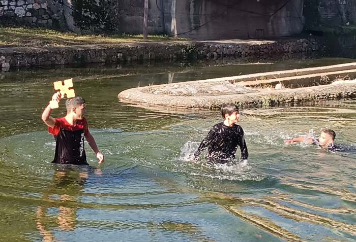 Τον Σταυρό ανέσυρε ένας απ΄ αυτούς, ο Δημήτρης Μπακράτσας και αμέσως μετά, ο κ. Χαρίτων δώρισε από έναν χρυσό σταυρό στους τολμηρούς νεαρούς.
