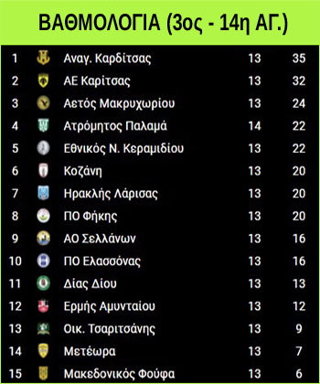 – Η Αναγέννηση Καρδίτσας με ανατροπή επιβλήθηκε με 1-3 της Καρίτσας κατακτώντας τον τίτλο στον 3ο όμιλο, που τη στέλνει στα play off ανόδου.