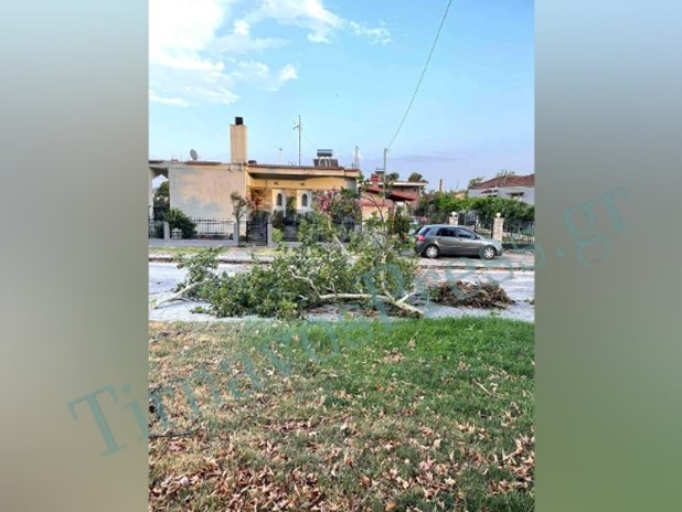 Σφοδρή καταιγίδα έπληξε την Ροδιά Τυρνάβου, αργά το απόγευμα της Πέμπτης, προκαλώντας ζημιές.