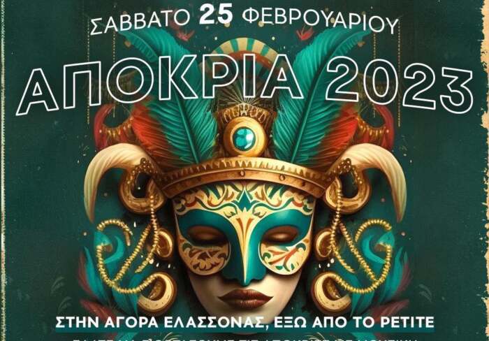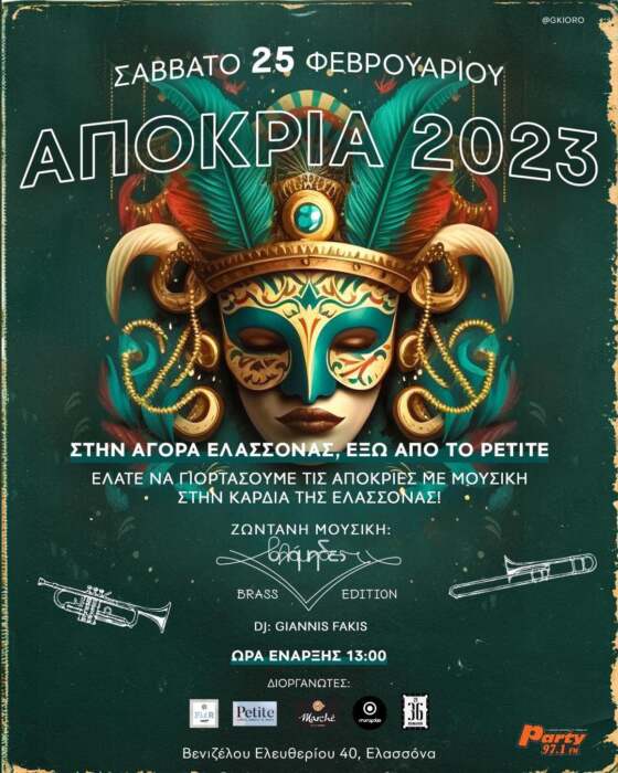 Ένα μεγάλο αποκριάτικο πάρτι περιμένει τους Ελασσονίτες το μεσημέρι του Σάββατου 25 Φεβρουαρίου στην αγορά της Ελασσόνας, σε ειδικά διοαμορφωμένο χώρο έξω από το cafe Pettite και ώρα 1 μ.μ.