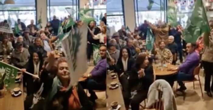 Δεκάδες υποστηρικτές του ΠΑΣΟΚ συγκεντρώθηκαν στο χώρο εκδηλώσεων “CAFÉ ΡΟΜΠΟΛΟ” δημιουργώντας ένα πραγματικά εντυπωσιακό κλίμα με σημαίες και τραγούδια. Κι όταν από τα ηχεία ακούστηκε το “Καλημέρα ήλιε” του Μάνου Λοΐζου, ο κ. Κωνσταντινόπουλος εντυπωσιασμένος άρχισε να βιντεοσκοπεί το ευχάριστο κλίμα.