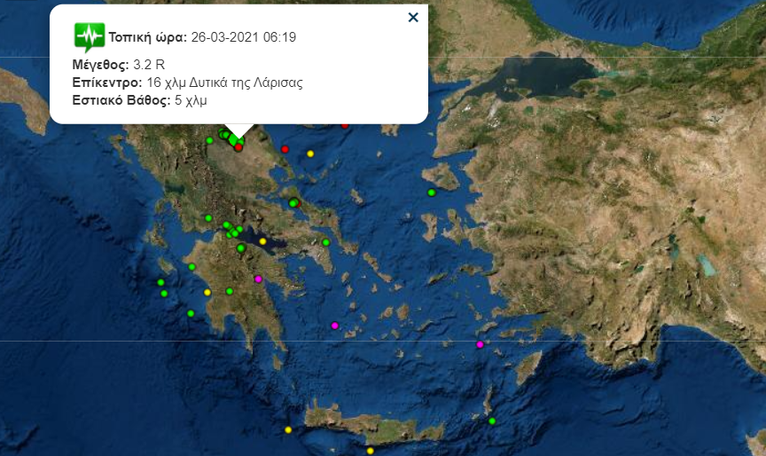 Ξημερώματα της Παρασκευής και ειδικότερα στις 06.19 π.μ. σημειώθηκε νέος μετασεισμός 3.2 της κλίμακας Ρίχτερ και με επίκεντρο 16χλμ δυτικά της Λάρισας.