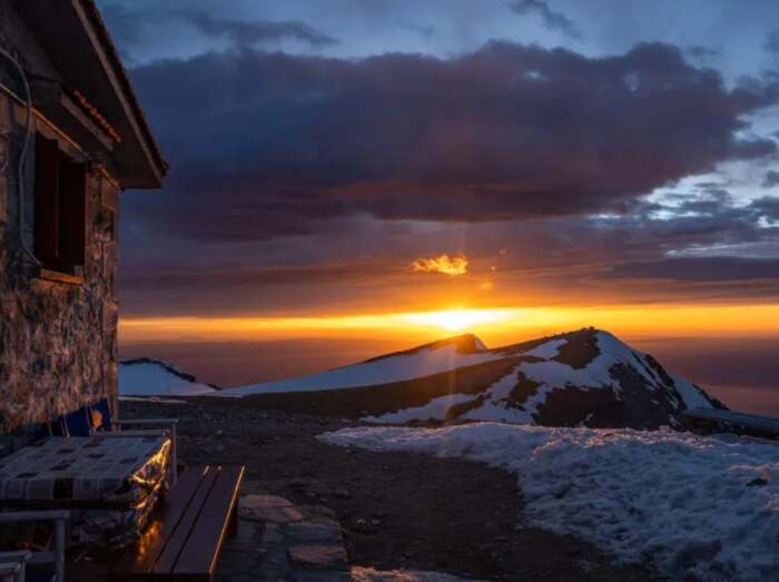 Όταν φτάσαμε στην τοποθεσία Μπάρμπα, στα μισά περίπου της διαδρομής, το χιόνι ήταν αρκετό για να βάλουμε, πλέον, τα ορειβατικά σκι στα πόδια και α συνεχίσουμε μέχρι το καταφύγιο. Φτάσαμε στις 3:00 τα μεσάνυχτα. H πρώτη ομάδα μας περίμενε δίπλα στη σόμπα και μας υποδέχθηκε με τσίπουρα και μεζέδες. Γίναμε έντεκα συνολικά και ο Mike μας ταξίδεψε στις μακρινές αποστολές από την Νέα Ζηλανδία μέχρι την Γροιλανδία, το Εκουαδόρ και την Παταγονία! Βρέθηκε εκεί για την μελέτη για την Κλιματική Αλλαγή που “τρέχει” σε συνεργασία με το Πολυτεχνείο της Λωζάννης (EPFL). Κανείς δεν ήθελε να πάει για ύπνο!