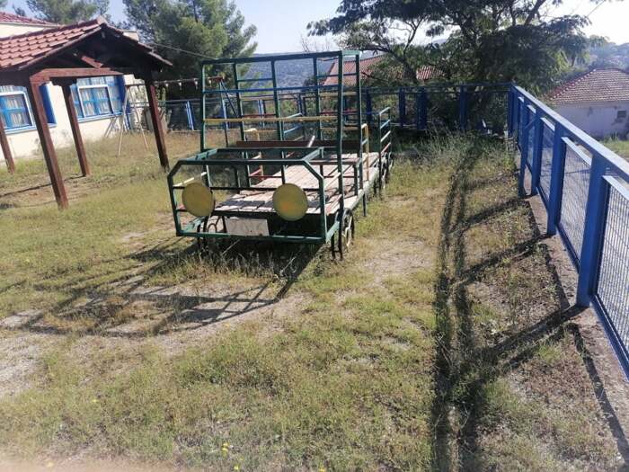 Σπασμένα τζάμια, χόρτα, σπασμένους κυβόλιθους και επικίνδυνα όργανα και καθίσματα, που δεν έχουν καμία σχέση με τις φωτογραφίες του κ. Γάτσα.