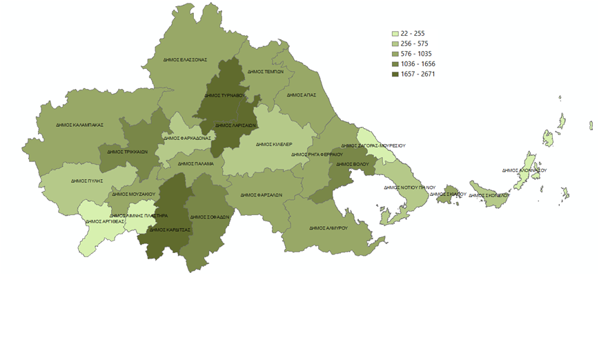 | Περιφέρεια Θεσσαλίας | 754 | 101.68 | 11834 | 1595.91 |