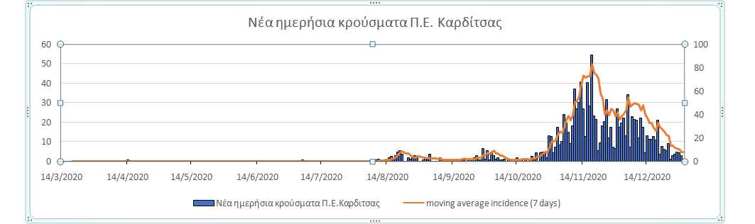 Ο αριθμός αναπαραγωγής(R=reproductive number)τουSARS-CoV-2 στην Π.E.Καρδίτσαςισούται με 0.49