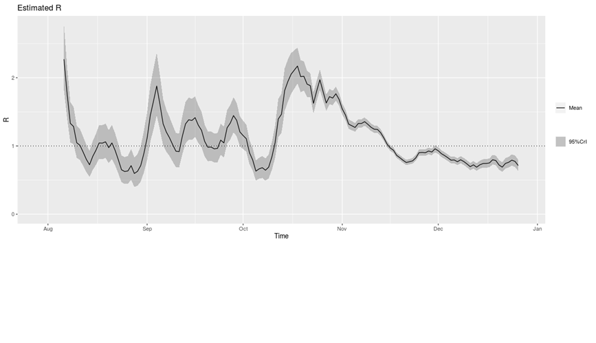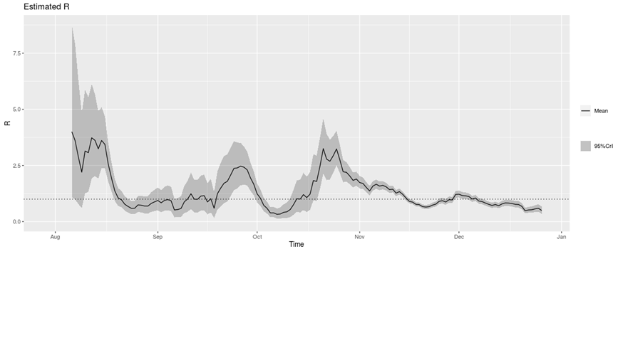 Για τις επιδημικές καμπύλες, τους χάρτες και τον αριθμός αναπαραγωγής R χρησιμοποιήθηκαν δεδομένα έως 31Δεκεμβρίου.