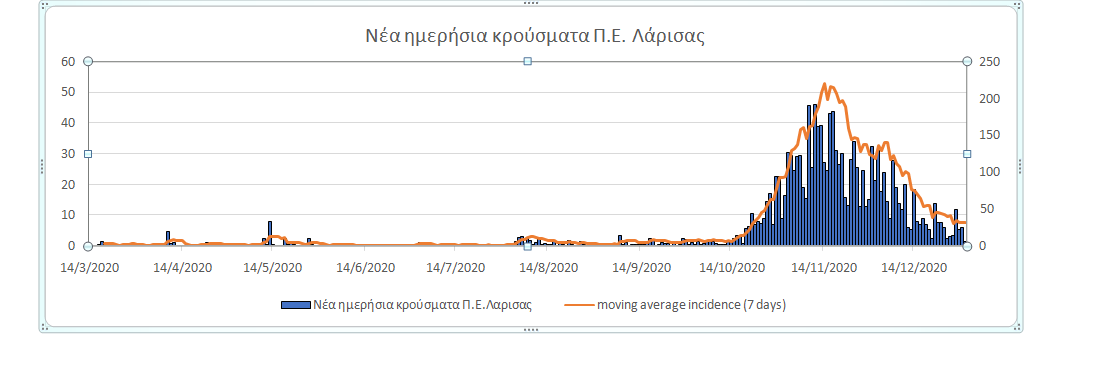 Ο αριθμός αναπαραγωγής(R=reproductive number)τουSARS-CoV-2 στην Π.Ε. Λάρισας ισούται με 0.76