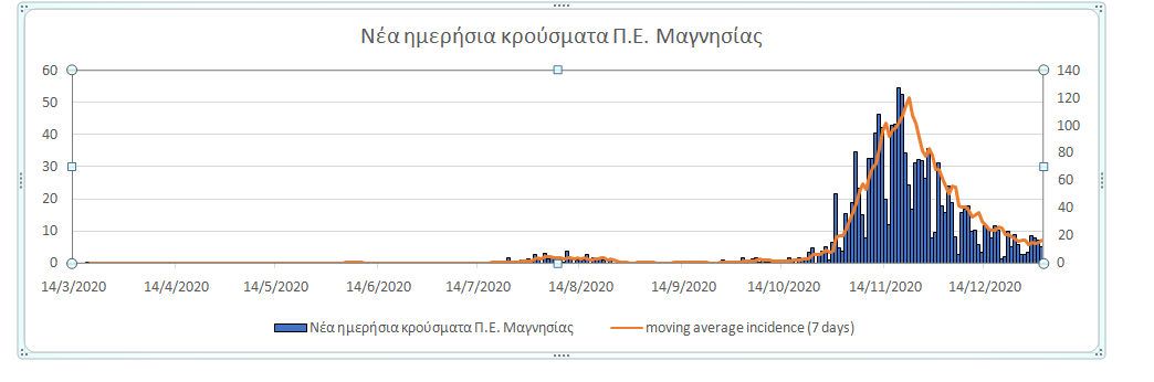 Ο αριθμός αναπαραγωγής(R=reproductive number)τουSARS-CoV-2 στην Π.Ε. Μαγνησίαςισούται με 0.94