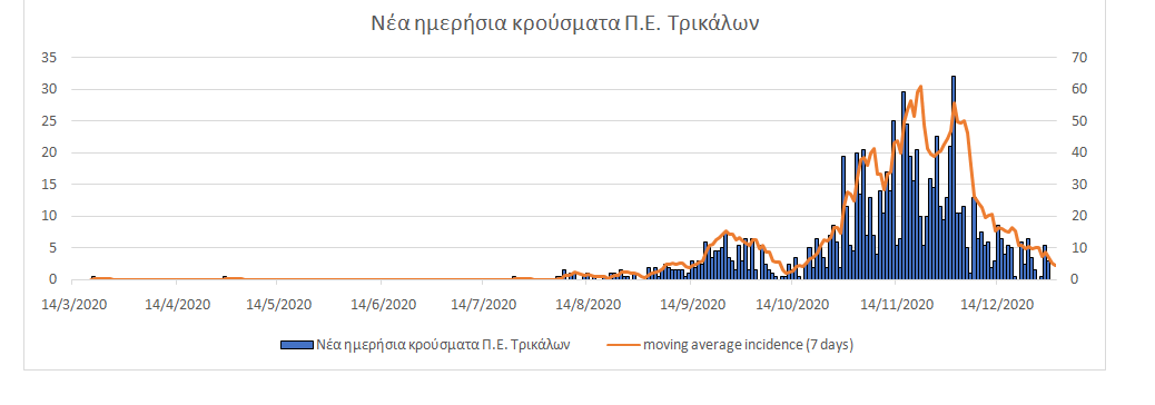 Ο αριθμός αναπαραγωγής(R=reproductive number)τουSARS-CoV-2 στην Π.E.Τρικάλων ισούται με0.51