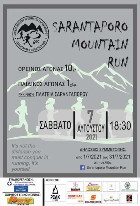 Με τη συμμετοχή πολλών αθλητών θα διεξαχθεί φέτος ο 4ος Ορεινός Αγώνας στο Σαραντάπορο «Sarantaporo Mountain Run» το Σάββατο 7 Αυγούστου 2021.