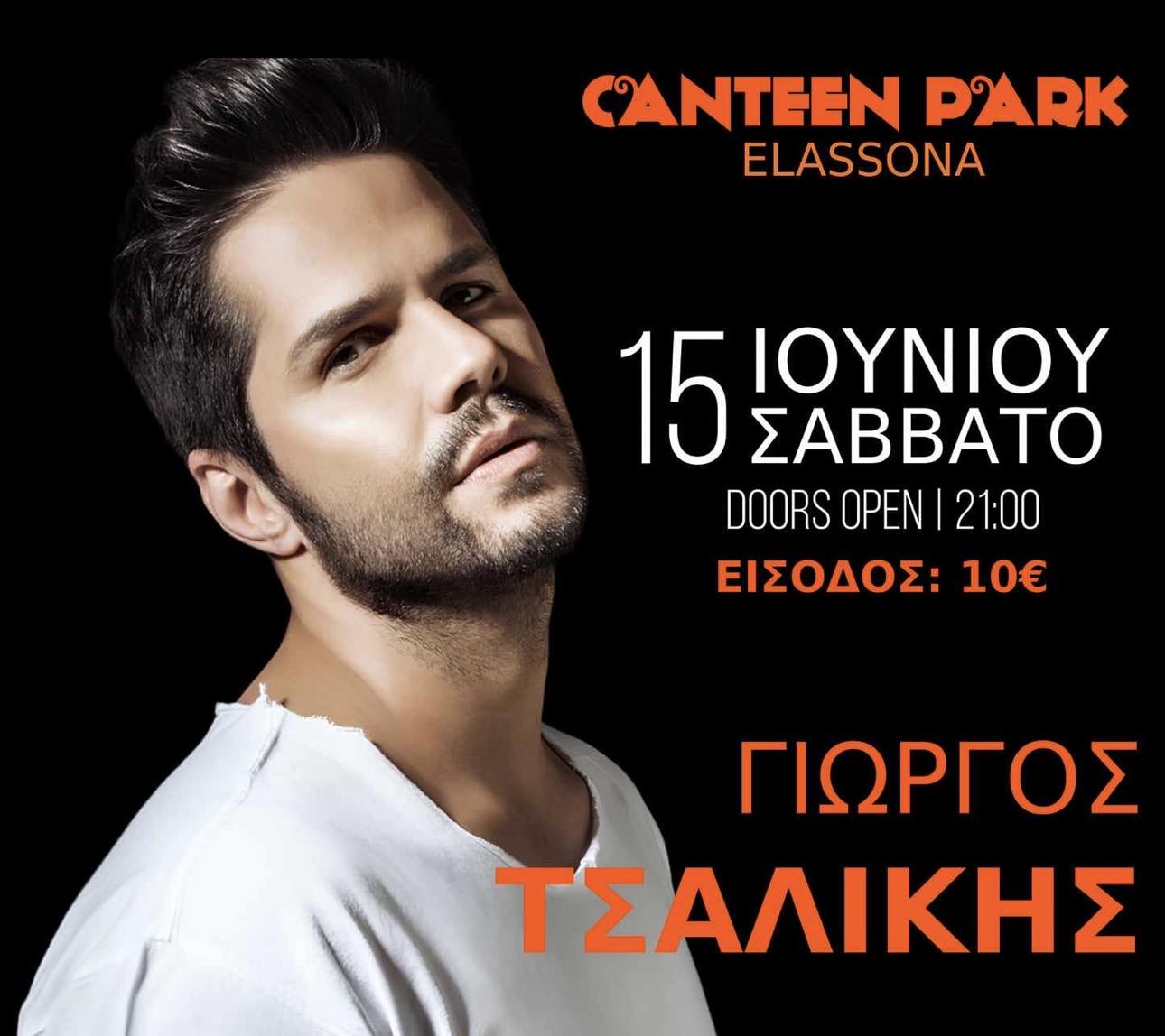 Το Σάββατο 15 Ιουνίου ο Γιώργος Τσαλίκης  στο Canteen Park (τέρμα 6ης Οκτωβρίου έναντι Lidl) στην Ελασσόνα για μια μοναδική εμφάνιση.