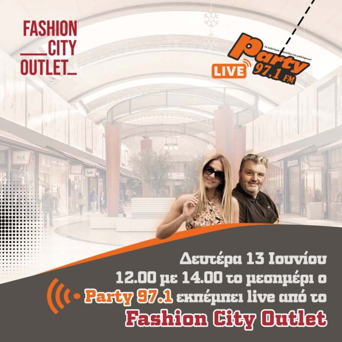Δευτέρα 13 Ιουνίου (του Αγίου Πνέυματος) ο Party 97,1 εκπεμπει live από το εκπτωτικό κέντρο Fashion City Outlet