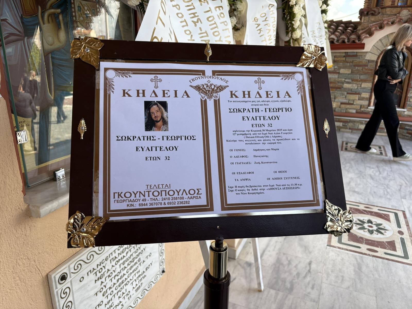 Η οικογένειά του, οι συγγενείς και οι φίλοι του, ήταν όλοι εκεί σήμερα νωρίς το μεσημέρι της Κυριακής, στον Ιερό Ναό του Αγίου Γεωργίου στη Λάρισα για να αποχαιρετήσουν τον αγαπημένο τους Σωκράτη.