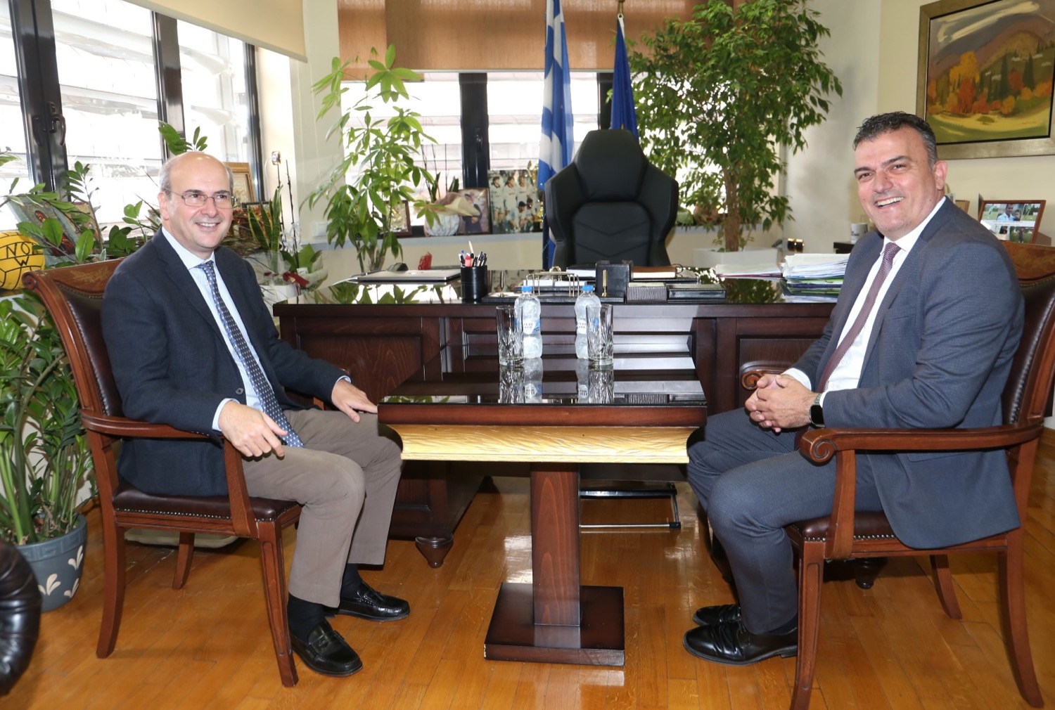 Οι προοπτικές ανάπτυξης, ιδίως στους τομείς της αγροδιατροφής, του τουρισμού, των έξυπνων υποδομών και της ενίσχυσης της αστικής ανθεκτικότητας της Λάρισας, αλλά και της ευρύτερης περιοχής, βρέθηκαν στο επίκεντρο της συνάντησης του Δημάρχου Λαρισαίων, κ.Θανάση Μαμάκου με τον Υπουργό Εθνικής Οικονομίας και Οικονομικών, κ.Κωστή Χατζηδάκη.