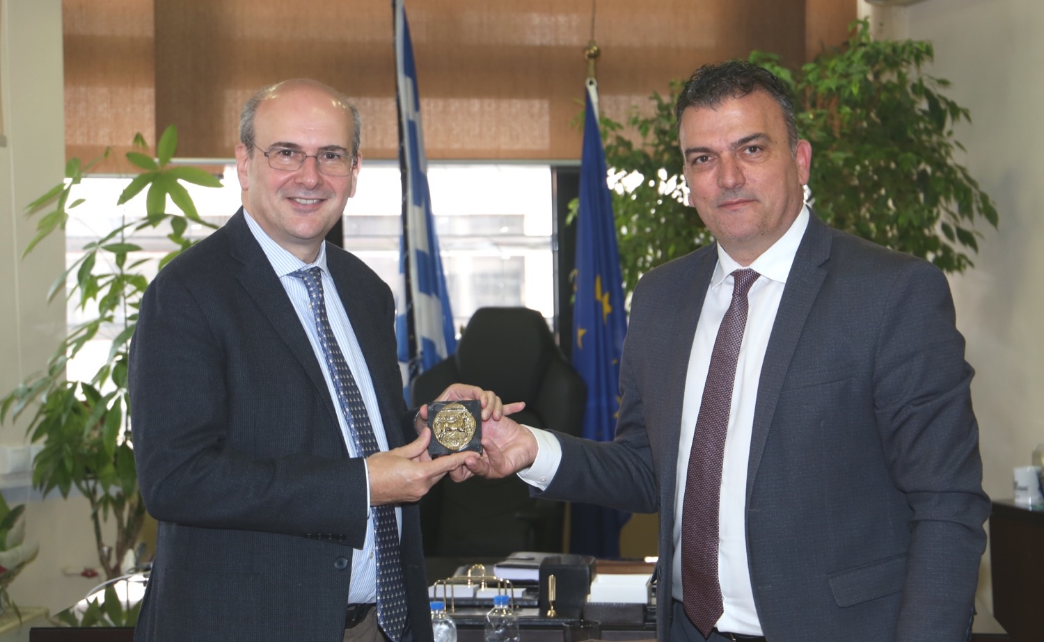 Το νόμισμα της πόλης, καθώς και καλάθι με τοπικά προϊόντα αγροδιατροφής (τσίπουρο Κατσάρου, κρασί Καριπίδη, χαλβάς-ταχίνι «Όλυμπος»-Παπαγιάννη και μαρμελάδες Jam & Jelly-Foodsurfing) ήταν τα εθιμοτυπικά δώρα του Δημάρχου Λαρισαίων προς τον κ.Χατζηδάκη.