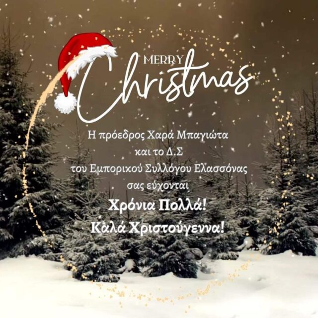 Η Πρόεδρος Χαρά Μπαγιώτα και το ΔΣ του Εμπορικού Συλλόγου Ελασσόνας σας εύχονται