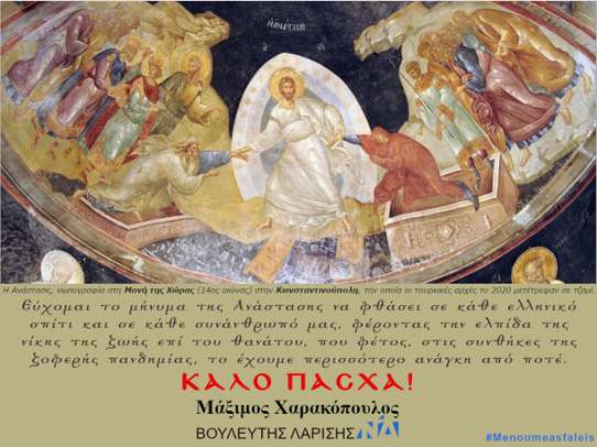 Με τη μοναδική νωπογραφία “Η Ανάστασις” από την ιστορική Μονή της Χώρας στην Πόλη, που η Τουρκία πέρυσι ασεβώς μετέτρεψε σε τζαμί, οι ευχές μου για Καλό Πάσχα σε όλους τους Ορθοδόξους όπου γης!