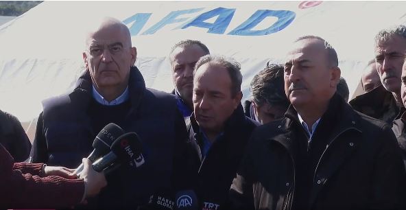 «Ευχαριστούμε την Ελλάδα για τη βοήθεια» τόνισε ο Μεβλούτ Τσαβούσογλου, από την Αντιόχεια, κατά τη διάρκεια των κοινών του δηλώσεων με τον υπουργό Εξωτερικών Νίκο Δένδια, ο οποίος μετέβη στη γειτονική Τουρκική που δοκιμάζεται από τον φονικό σεισμό που προκάλεσε ανυπολόγιστη καταστροφή.