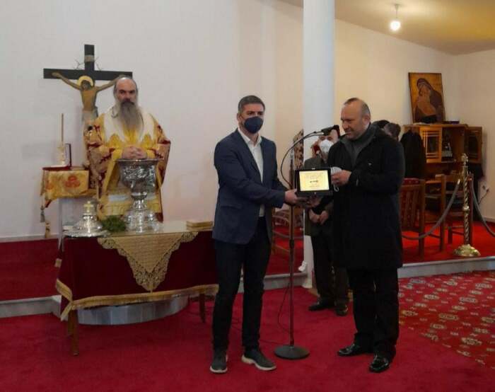 Από τα χέρια του προέδρου της Τοπικής Κοινότητας Γιώργου Τσανάκα ο Θανάσης Παιδής έλαβε τιμητική πλακέτα, το κλειδί του χωριού, όπως και ένα συμβολικό δώρο ανταπόδοσης για την έμπρακτη βοήθεια την οποία ο περιφερειακός σύμβουλος δίνει συνεχώς.