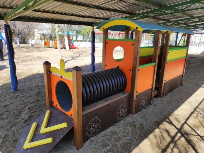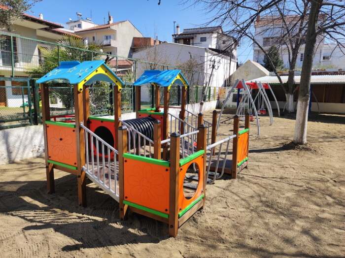 Τα όργανα που τοποθετήθηκαν είχαν ήδη επιλεγεί και παραγγελθεί βάσει των ευρωπαϊκών προτύπων ασφαλείας, με γνώμονα την κάλυψη των αναγκών των παιδιών. Έτσι τα νήπια στα διαλείμματά τους θα απολαμβάνουν το παιχνίδι τους σε ολοκαίνουργιες τσουλήθρες, κούνιες, σε ένα αισθητικά αναβαθμισμένο και ασφαλές περιβάλλον. Ο παλαιός εξοπλισμός της παιδικής χαράς επισκευάστηκε και συντηρήθηκε, ώστε να είναι απόλυτα ασφαλής και επανατοποθετήθηκε στο χώρο της αυλής.