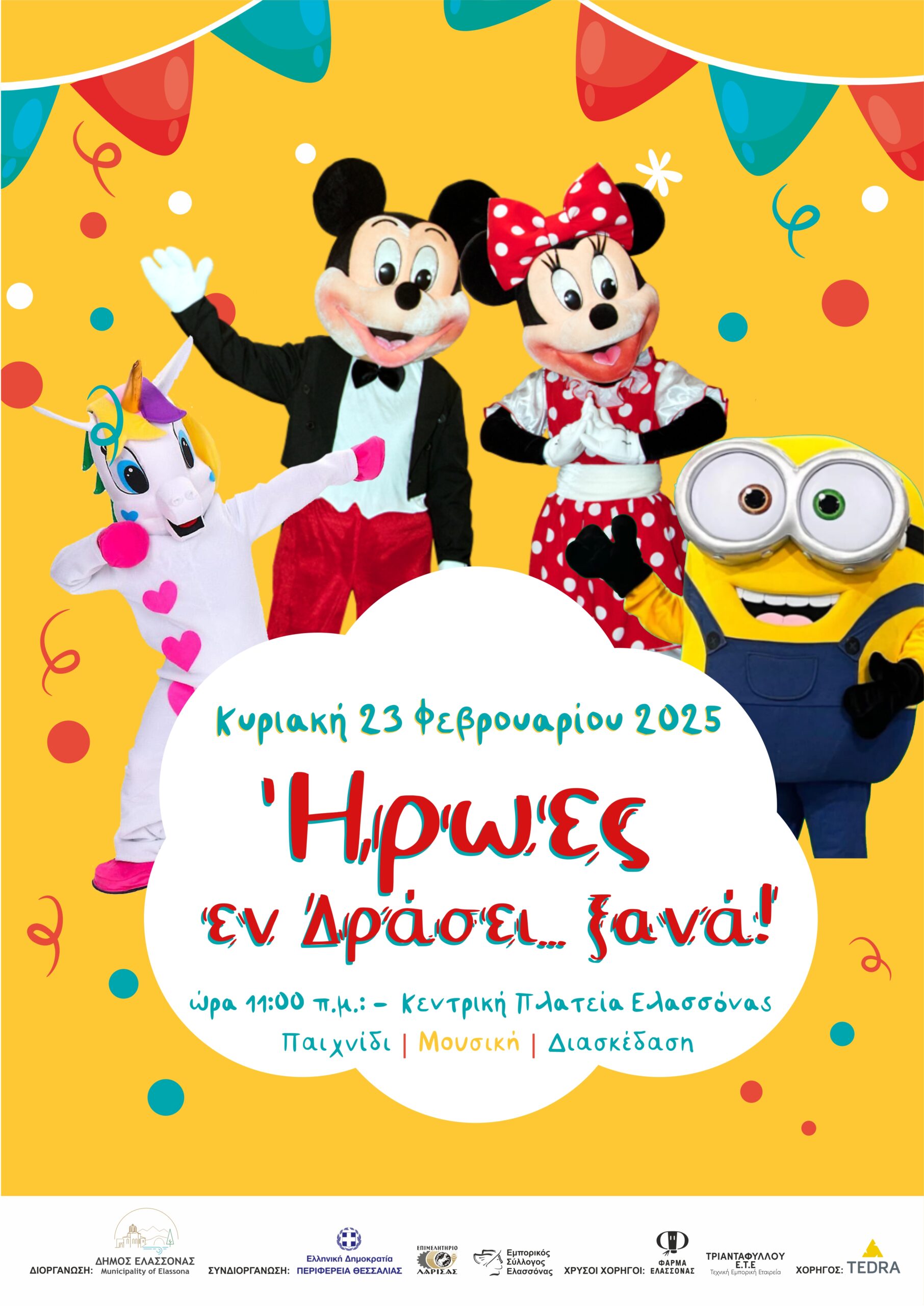 Παιδική αποκριάτικη εκδήλωση «ΗΡΩΕΣ ΕΝ ΔΡΑΣΕΙ» Κυριακή 23 Φεβρουαρίου | 11:00 | Κεντρική Πλατεία Ελασσόνας