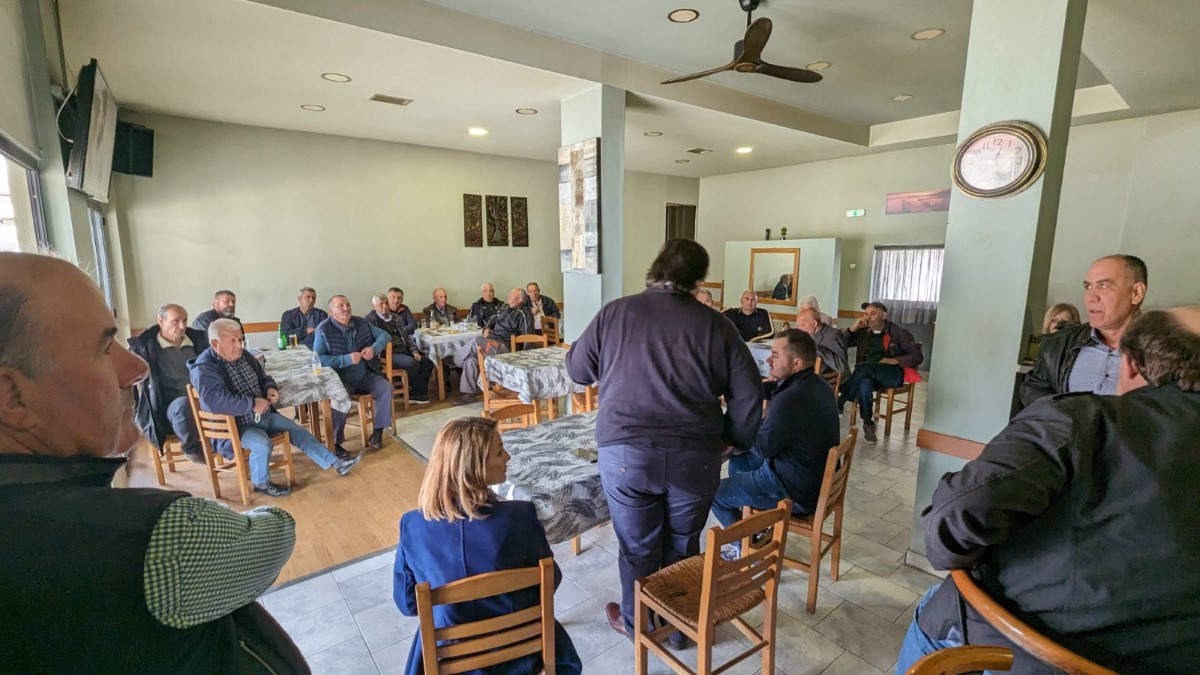 Νωρίτερα ο υποψήφιος βουλευτής του ΠΑΣΟΚ συναντήθηκε στα Καλύβια Αναλήψεως, με το ιδρυτικό μέλος και αντιπρόεδρο του Συνεταιρισμού Αιγοπροβατοτρόφων Ελασσόνας «γάλα ελάςς», κ. Γιάννη Ζιώζια. Ο Συνεταιρισμός αποτελείται από 170 παραγωγούς και 115 κτηνοτροφικές μονάδες. Το 2018 προχώρησε στην ίδρυση τη Ο.Π. αιγοπρόβειου Γάλακτος με δυναμική 40.000 τόνους. Ανάμεσα στις δραστηριότητες της Ο.Π. είναι το εμπόριο ζωοτροφών και κρέατος για τα μέλη του, καθώς και το εμπόριο γάλακτος πάχυνσης αμνοεριφίων Halavit.