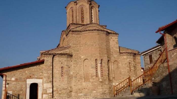 Θεωρείται Ιστορικό Διατηρητέο Μνημείο, γνωστό ως «Παλιμανάστερο». Σύμφωνα με τις καταγραφές, πρόκειται για μικρό λιθόκτιστο ναό με ημικυκλική κόγχη ανατολικά και δίρριχτη στέγη, με απότμηση στην ανατολική πλευρά. Η είσοδος στον Ναό γίνεται μέσω θύρας στον νότιο τοίχο και μοναδική πηγή φωτισμού του Ναού αποτελεί ένα τοξωτό παράθυρο στο ανατολικό τμήμα του νότιου τοίχου. Στο δεξιό τμήμα του περιθυρώματος έχει εντοιχισθεί λιθανάγλυφο, στο ανώτερο τμήμα του οποίου διαμορφώνεται διάχωρο με παράσταση συμβόλων της Σταύρωσης και εκατέρωθεν αυτών την ημερομηνία 19 ΙΑΝ 1819. Κάτω από τον διάχωρο με παράσταση σώζεται ελληνιστική επιγραφή, σε έξι στίχους, η οποία μαρτυρεί το όνομα «ΑΝΤΙΓΟΝΟΣ». Η παράδοση του χωριού λέει πως το «Παλιμανάστερο» (παλιό μοναστήρι) ήταν η παλιά θέση της Ιεράς Μονής Κοιμήσεως της Θεοτόκου, που σήμερα βρίσκεται νοτιοανατολικά του οικισμού. Δίπλα στο παλιό εκκλησάκι κτίστηκε το 1991 ένα δεύτερο μεγαλύτερο, για να εξυπηρετήσει τις λατρευτικές ανάγκες των πιστών, κυρίως κατά τον Δεκαπενταύγουστο, που εορτάζει η Παναγία.