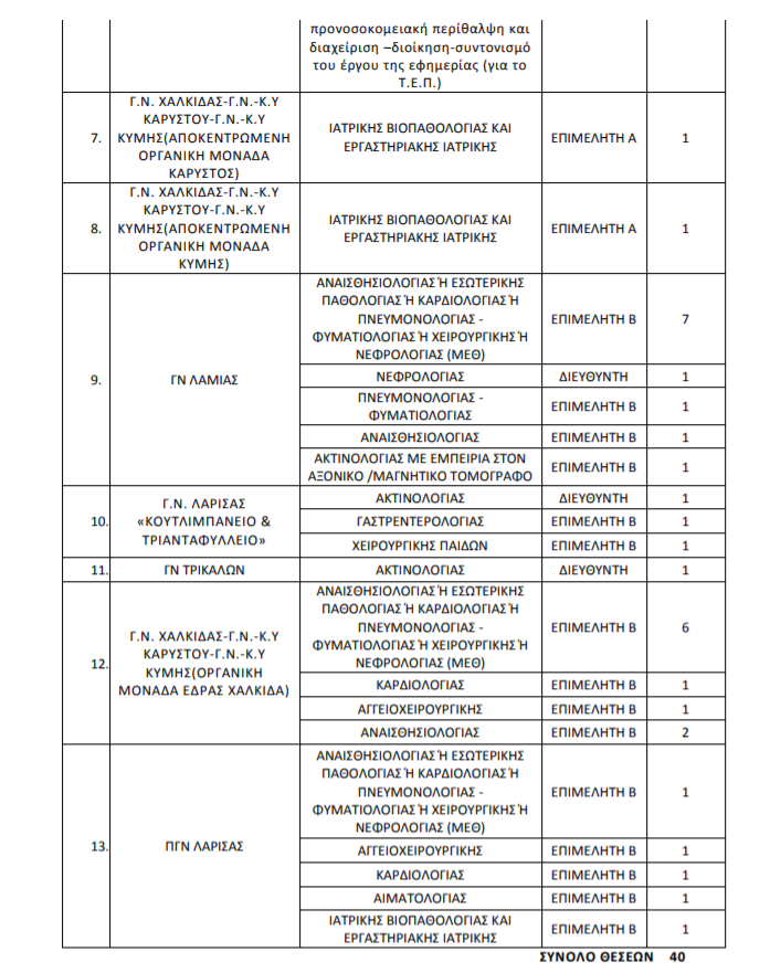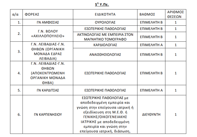 Προσλήψεις γιατρών στα δύο νοσοκομεία της Λάρισας (ΠΙΝΑΚΑΣ)