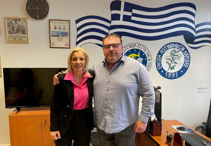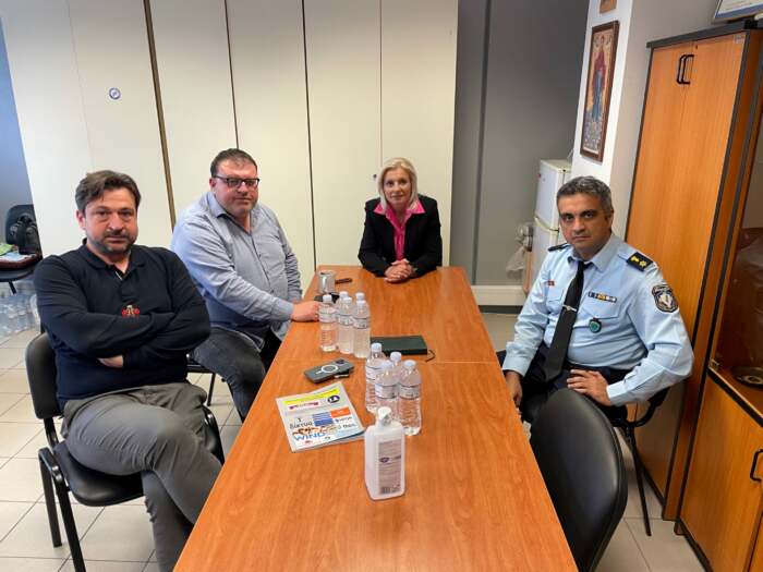 Η Λαρισαία πολιτικός συναντήθηκε με επικεφαλής και μέλη της Πυροσβεστικής Υπηρεσίας, στην έδρα της Περιφερειακής Πυροσβεστικής Διοίκησης Θεσσαλίας και συγκεκριμένα με τον διοικητή της περιφερειακής διοίκησης, αρχιπύραρχο Νικόλαο Μητσιογιάννη και τον διοικητή ΠΥΛ, πύραρχο Λάμπρο Κίτσιο. Κατά την επίσκεψή της στην έδρα της Γενικής Περιφερειακής Αστυνομικής Διεύθυνσης Θεσσαλίας συναντήθηκε με τον πρόεδρο της Ένωσης Αστυνομικών Λάρισας και αντιπρόεδρο της Ομοσπονδίας Αστυνομικών Υπαλλήλων, Αθανάσιο Νταβούρα και μέλη της Ένωσης, καθώς και με τον πρόεδρο της Ένωσης Αξιωματικών Ελληνικής Αστυνομίας Περιφέρειας Θεσσαλίας, Χρήστο Καλούσιο.