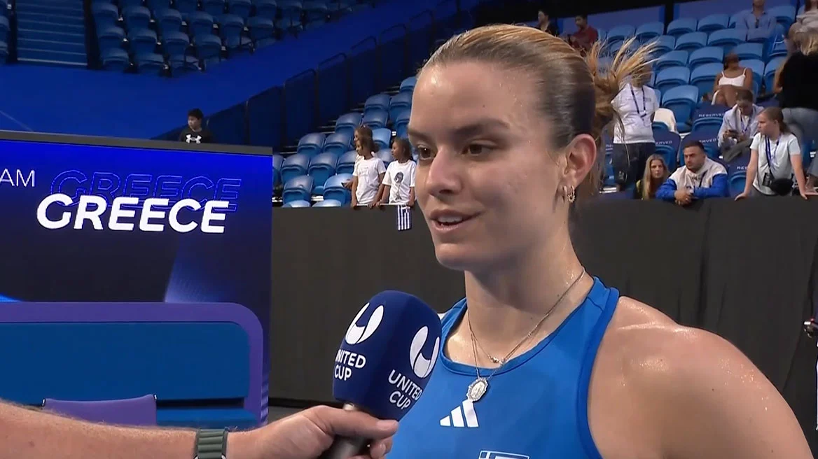 Η Σάκκαρη παρέμεινε συγκεντρωμένη στη σημασία της νίκης για την Ελλάδα στο United Cup, υπογραμμίζοντας έμπρακτα ότι προτεραιότητά της στο παρόν παραμένει η παρουσία της στο κορτ και η συμβολή της στην εθνική προσπάθεια.