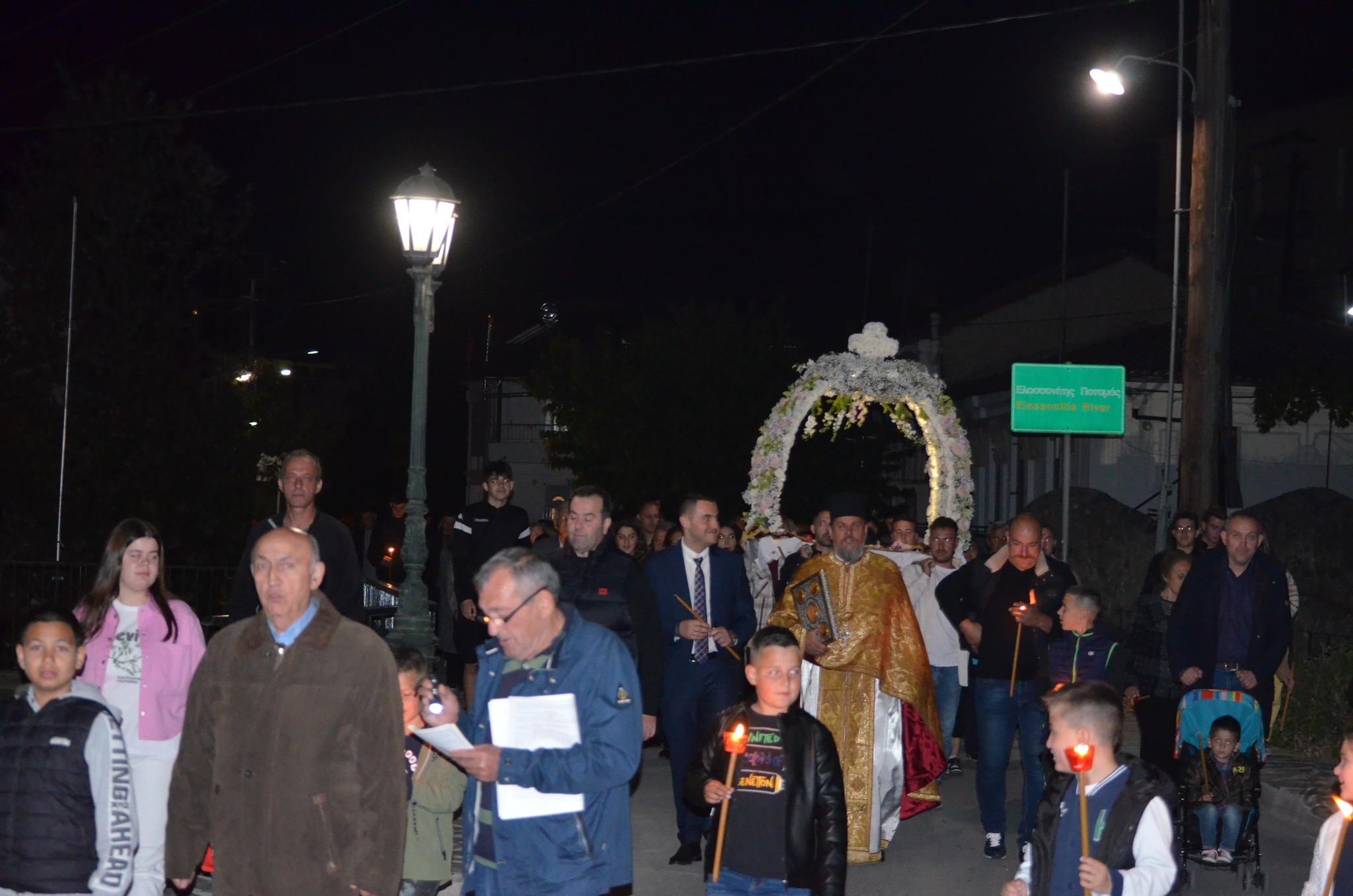 Λίγο μετά τις 9.30 το βράδυ, πιστοί συγκεντρώθηκαν και παρακολούθησαν σε κατανυκτική ατμόσφαιρα τις περιφορές των στολισμένων Επιταφίων που συνόδευε η Φιλαρμονική Ορχήστρα του Δήμου Ελασσόνας, υπό τη διεύθυνση του αρχιμουσικού Δημήτρη Τσιαβέ, οι οποίες κινήθηκαν σε κεντρικούς δρόμους της πόλης για να συναντηθούν στην Κεντρική Πλατεία.