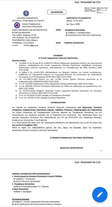 Θέλω να ενημερώσω τους συμπολίτες μου -προς αποφυγή παραπληροφόρησης- ότι ο Δήμος Ελασσόνας έχει κηρυχθεί στο σύνολο του σε κατάσταση έκτακτης ανάγκης Πολιτικής Προστασίας μετά από αίτημα που καταθέσαμε στις 5/3 μετά το δεύτερο μεγάλο σεισμό, όπως προκύπτει από την απόφαση της Γενικής Γραμματείας Πολιτικής Προστασίας. Η διαχείριση και αυτής της κρίσης απαιτεί υπευθυνότητα, σοβαρότητα και πάνω από όλα σεβασμό στο συνάνθρωπο που δοκιμάζεται.