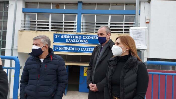 Ο δήμαρχος κ. Γάτσας τους ενημέρωσε για την κατάσταση που επικρατεί στα σχολεία της Ελασσόνας και του Βλαχογιαννίου μετά το σεισμό της 3ης και 4ης Μαρτίου και τα προβλήματα που έχουν προκύψει μετά από έλεγχο που πραγματοποίησαν μηχανικοί του οργανισμού Κτιριακές Υποδομές Α.Ε.