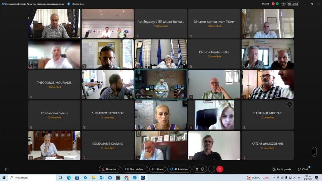 Σε ευρεία συντονιστική σύσκεψη λόγω των εκτάκτων καιρικών φαινομένων με την κωδική ονομασία ATENA υπό τον Υπουργό Πολιτικής Προστασίας κ. Βασ. Κικίλια συμμετέχει αυτή την ώρα ο Δήμαρχος Ελασσόνας Ν. Γάτσας. Εφιστάται η προσοχή όλων στα έκτακτα καιρικά φαινόμενα, που σύμφωνα με το Δελτίο Καιρού αναμένεται να είναι πιο ισχυρά στο Δήμο Ελασσόνας σήμερα Τρίτη 10 Σεπτεμβρίου.