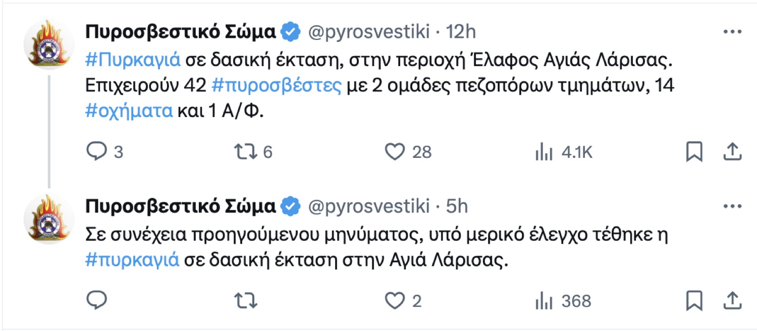 Δείτε τις αναρτήσεις του Πυροσβεστικού Σώματος τις τελευταίες ώρες: