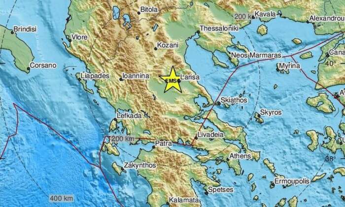 Το ακριβές επίκεντρο τη δόνησης εντοπίζεται στα 14 χλμ. δυτικά της Λάρισας