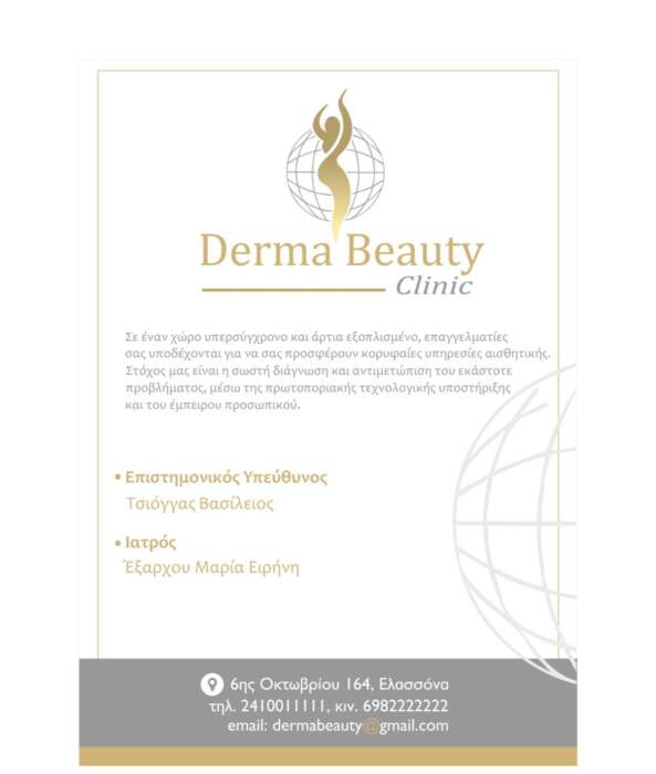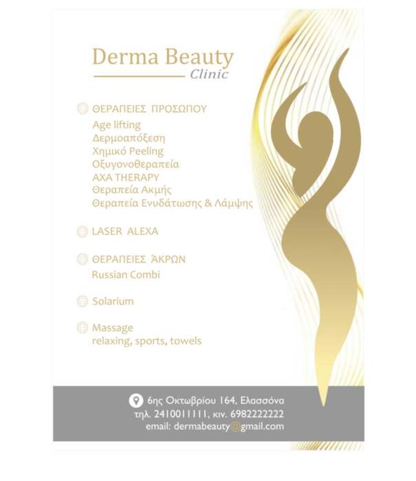 Σήμερα Πέμπτη 8 Ιουνίου στις 8.30 το βράδυ, θα πραγματοποιηθούν τα εγκαίνια ενός υπερσύγχρου χώρου ομορφιάς στην Ελασσόνα. Πρόκειται για το Derma Beauty clinic στην οδό 6ης Οκτωβρίου 164 (απάναντι από το ΚΕΠ) που έρχεται στην πόλη μας να προσφέρει υψηλού επιπέδου υπηρεσίες αισθητικής με πρωτοποριακή τεχνολογική υποστήριξη και έμπειρο προσωπικό.