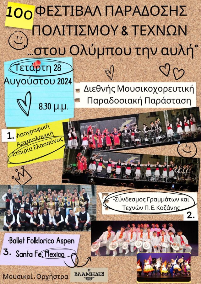 3η μέρα ΦΕΣΤΙΒΑΛ ΠΑΡΑΔΟΣΗΣ ΠΟΛΙΤΙΣΜΟΥ ΚΑΙ ΤΕΧΝΩΝ “…στου Ολύμπου την αυλή”.