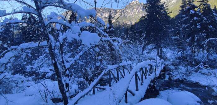 Σε μαγικό τοπίο έχει μετατρέψει το χιόνι τον Όλυμπο και το μοναδικής ομορφιάς φαράγγι του Ενιπέα. Μπορεί το χιόνι να έπεσε πυκνό και να κάλυψε τα πάντα πριν λίγες μέρες, όμως οι πολύ χαμηλές θερμοκρασίες το κράτησαν αναλλοίωτο. Το τοπίο μοιάζει σα να βγήκε από κάποιο παραμύθι, σμιλεμένο από το χέρι ενός έμπειρου ζωγράφου.