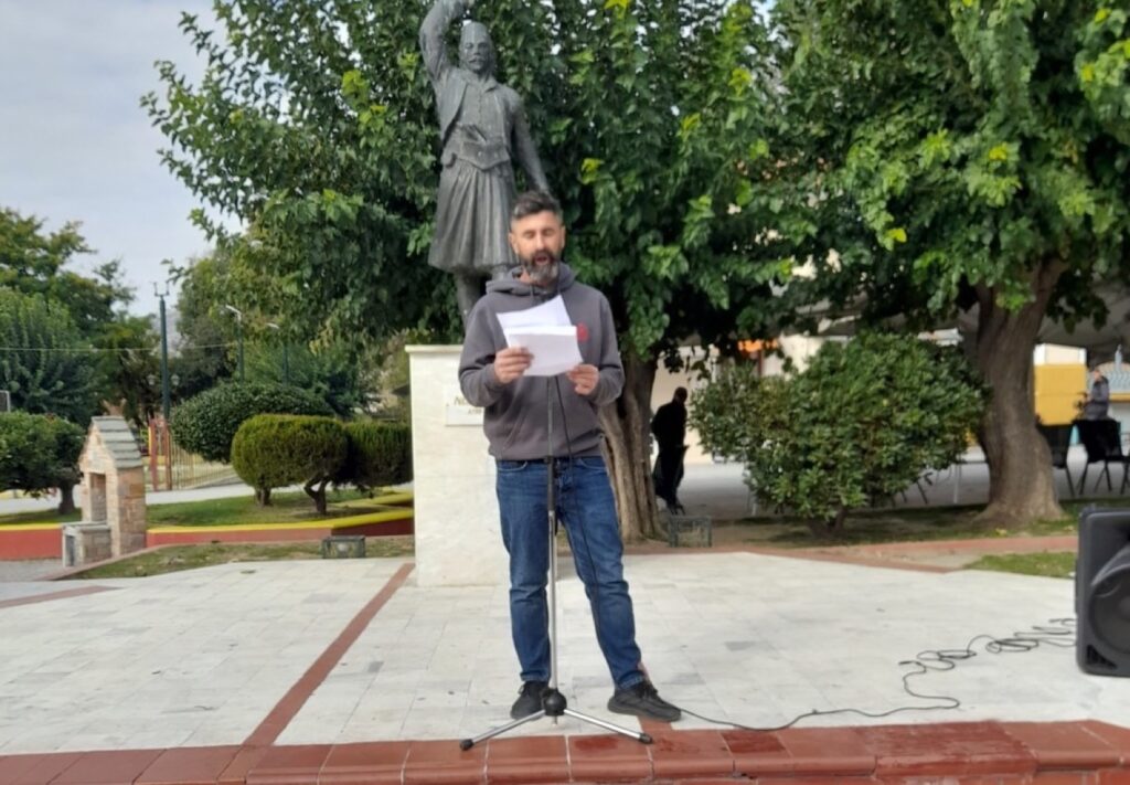 Βρισκόμαστε σήμερα εδώ μετά την επιτυχημένη απεργία της 1ης Οκτώβρη μια απεργία για την οποία εκατοντάδες σωματεία, ομοσπονδίες, συνδικάτα και εργατικά κέντρα έχουν πάρει απόφαση κόντρα στην πλειοψηφία της διοίκησης στη ΓΣΕΕ η οποία ήταν απέναντι στην απόφαση της πλειοψηφίας των εργαζομένων να μην δεχτούν την «σύγχρονη» σκλαβιά του 13ωρου, όπως έκαναν και με τους άλλους κρίσιμους αντεργατικούς νόμους Χατζηδάκη και Γεωργιάδη, όπως έκαναν και στις απεργίες για να μη συγκαλυφθεί το έγκλημα στα Τέμπη.
