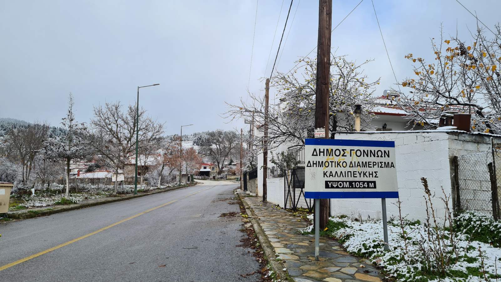 Μεταξύ των περιοχών όπου έπεσε χιόνι είναι και η Καλλιπεύκη Ολύμπου που ανήκει στον Δήμο Τεμπών. Ωστόσο, προβλήματα δεν έχουν προκύψει και οι δρόμοι είναι καθαροί.
