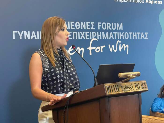 Με αυτά τα λόγια ξεκίνησε την τοποθέτησή της η βουλευτής Λάρισας της ΝΔ κα Στέλλα Μπίζιου στο 1ο Διεθνές Forum Γυναικείας Επιχειρηματικότητας, το οποίο συνδιοργάνωσαν το Επιμελητήριο Λάρισας, ο Δήμος Λαρισαίων, η Κεντρική Ένωση Επιμελητηρίων, το Εθνικό Επιμελητηριακό Δίκτυο Ελληνίδων Γυναικών Επιχειρηματιών (ΕΕΔΕΓΕ) υπό την αιγίδα της Περιφέρειας Θεσσαλίας.