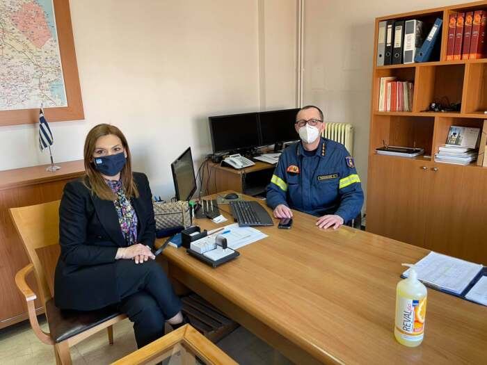 Με το νέο Περιφερειακό Διοικητή Πυροσβεστικών Υπηρεσιών Θεσσαλίας Αρχιπύραρχο κ. Ευάγγελο Φαλάρα και το νέο Διοικητή Πυροσβεστικής Υπηρεσίας Λάρισας Πύραρχο κ. Σάββα Τσολάκη συναντήθηκε η βουλευτής Λάρισας της ΝΔ κα Στέλλα Μπίζιου, με αφορμή την ανάληψη των καθηκόντων τους.